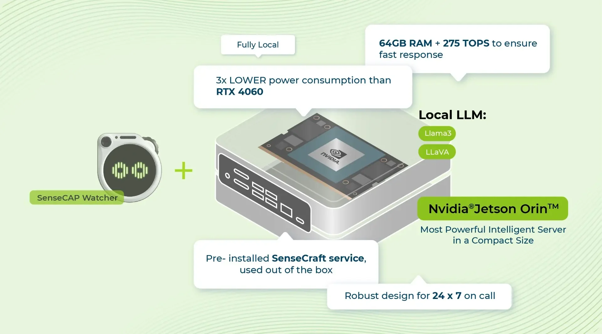 You can deploy SenseCraft on your spare computers. However, if you aim for applications requiring commercial-grade reliability and low-power consumption, the combination of SenseCAP Watchter + NVIDIA® Jetson AGX Orin™ is perfect for you!