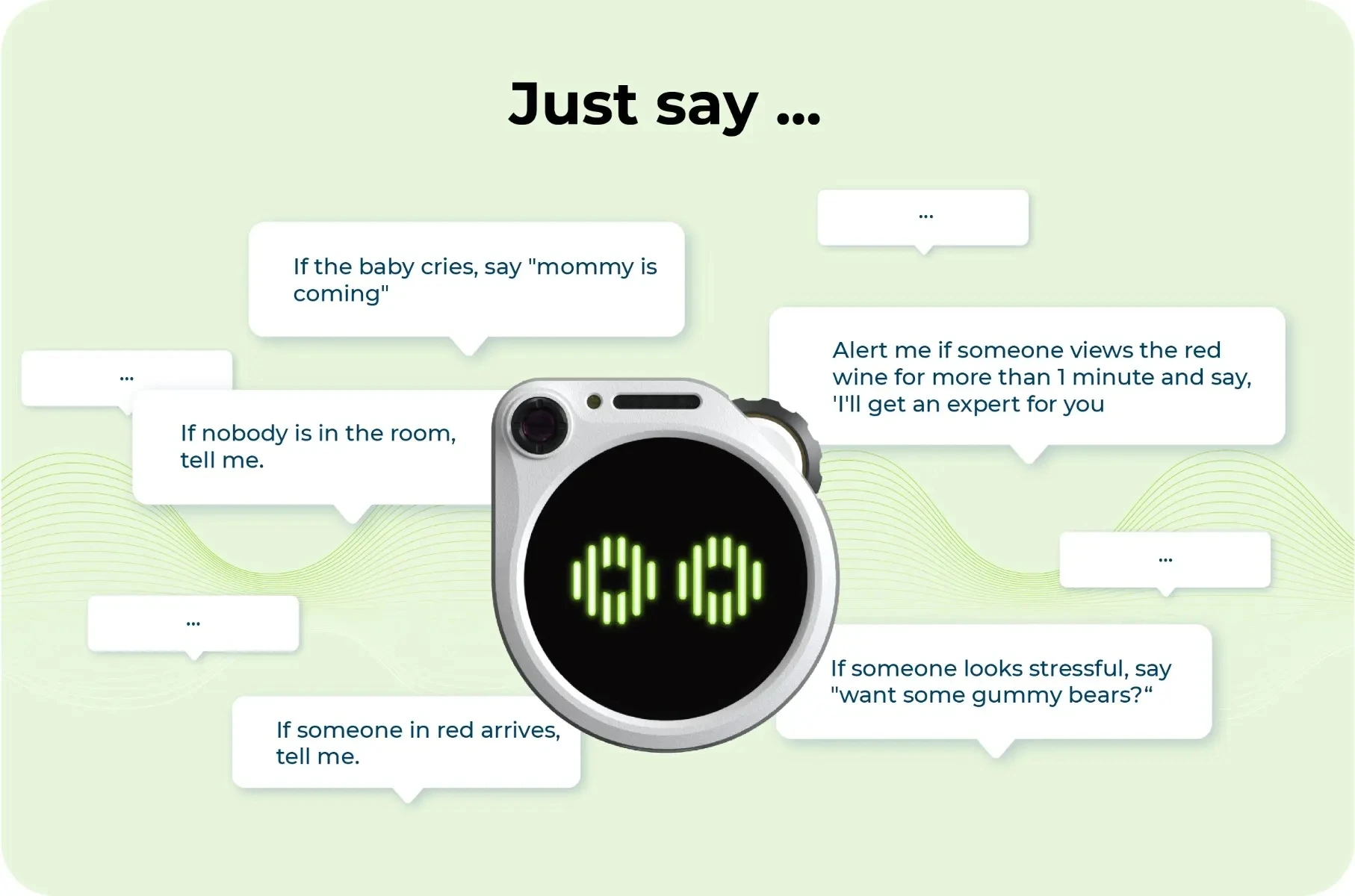 Putting Watcher in different scenarios allows for versatile responses. When seeing a dog tearing up tissues, say “Stop, Cooper!”, when seeing a person smoking in non-smoking areas, say "No smoking!"