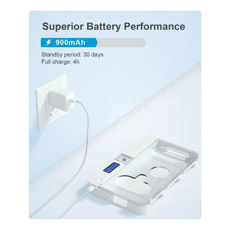 [Built-in Battery]: Built-in 900mAh rechargeable battery, 4 hours charging time, 30days standby time. Support mobile phone face up or face down. The locker box cover has several holes, if the mobile phone is face up, some functions of the mobile phone can be operated.