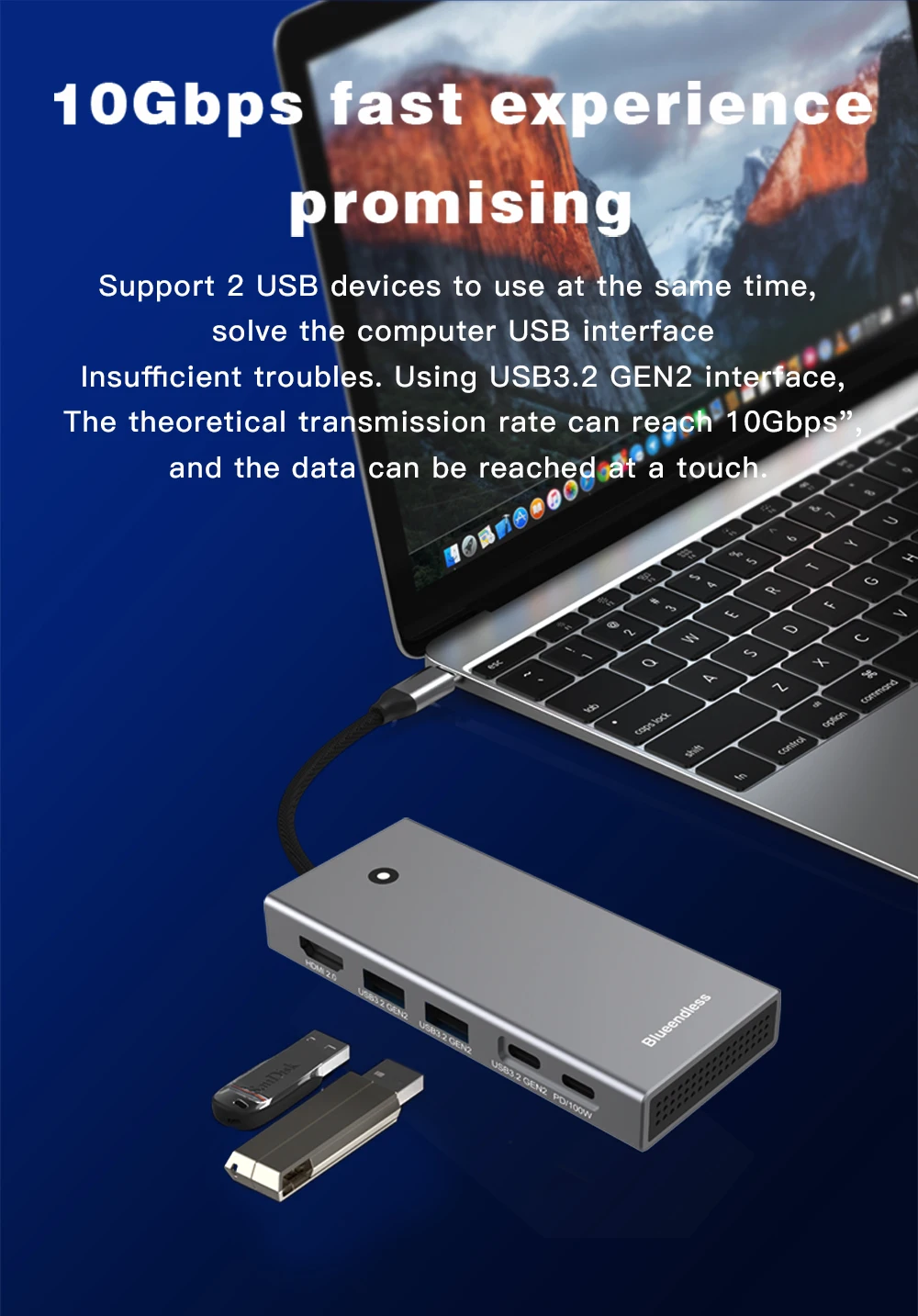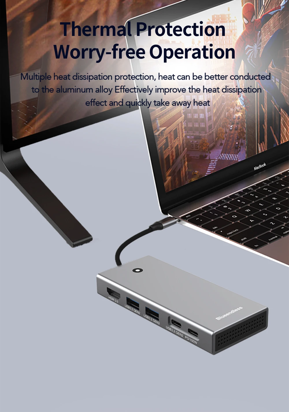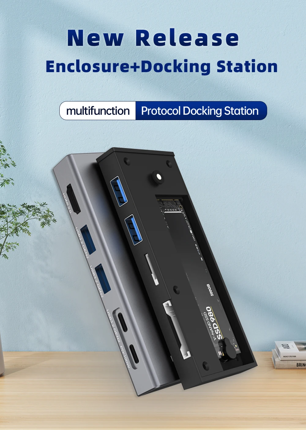 Comprar Caja Blueendless m2 sata o m.2 NVMe SSD con concentrador USB C estación de acoplamiento para ordenador portátil 4K 60Hz HDMI-Com USB3.2 100W PD SDTF 10Gbps