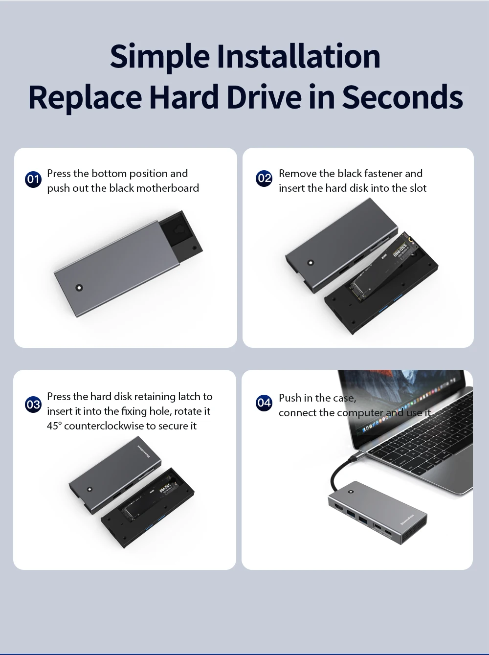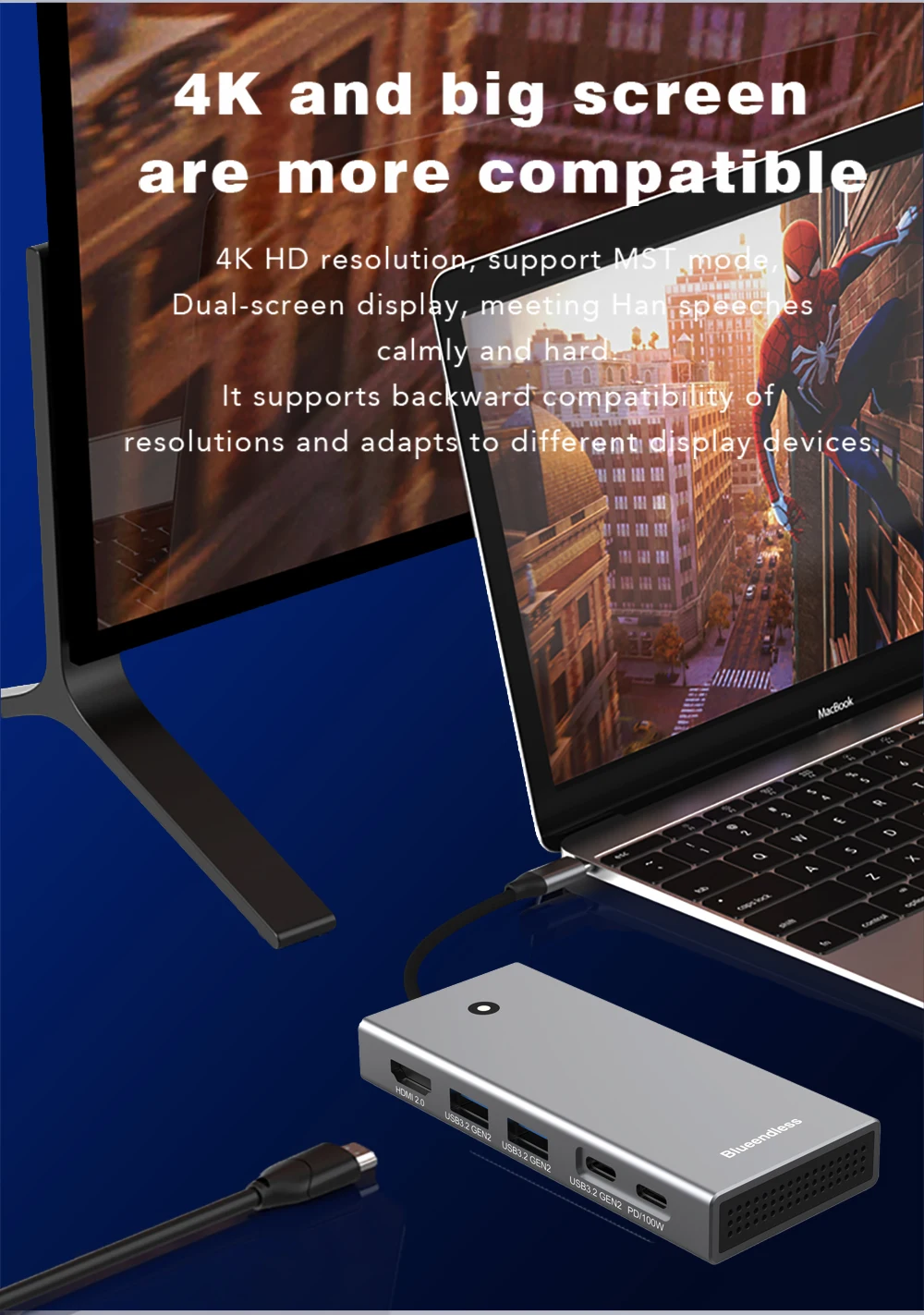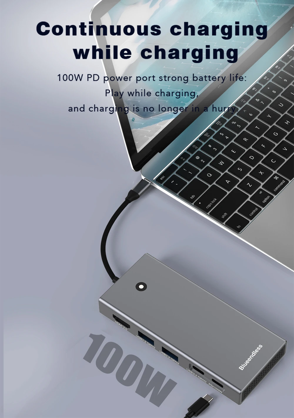 Comprar Caja Blueendless m2 sata o m.2 NVMe SSD con concentrador USB C estación de acoplamiento para ordenador portátil 4K 60Hz HDMI-Com USB3.2 100W PD SDTF 10Gbps