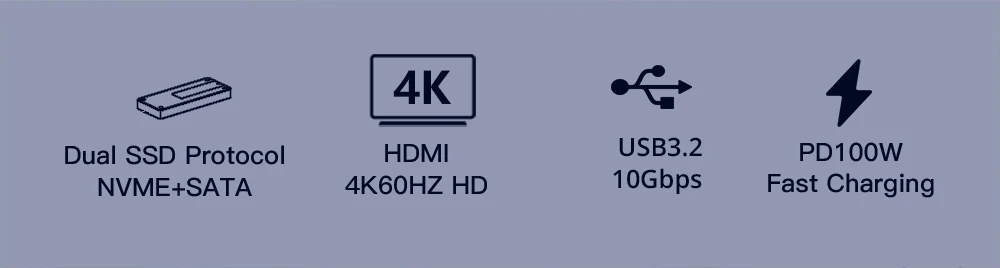 HUB USB C con m2 Sata/NVMe SSD Recinto + 2 * Puerto USB3.1 A + 1 * Puerto usb3.1 C + PD 100W + HDMI (sin lector de tarjetas)
