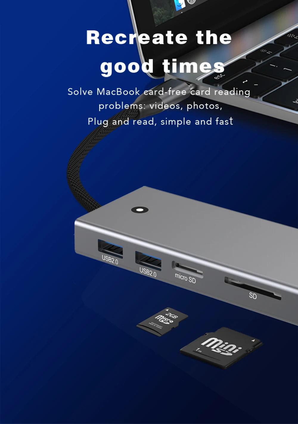 HUB USB C con carcasa m2 Sata/NVMe SSD + 2 * USB2.0 + lector de tarjetas TF/SD (sin HDMI)