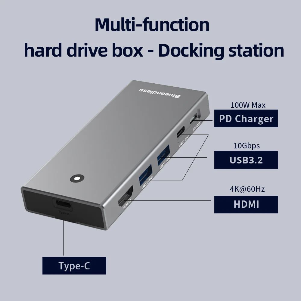Comprar Caja Blueendless m2 sata o m.2 NVMe SSD con concentrador USB C estación de acoplamiento para ordenador portátil 4K 60Hz HDMI-Com USB3.2 100W PD SDTF 10Gbps