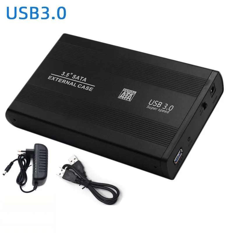 Comprar Caja de carcasa externa para disco duro HDD, carcasa de aluminio, USB 3,5 de 3,0 pulgadas, Caddy Sata, Cable, cargador de Corriente CA y CC de 12v y 2A