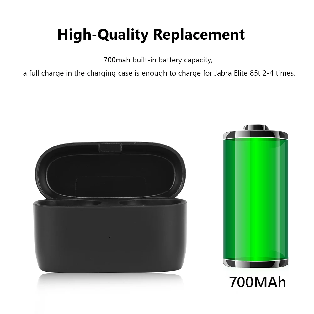 Reemplazo de alta calidad: capacidad de batería incorporada de 700mAh, una carga completa en el estuche de carga es suficiente para cargar Jabra Elite 85T 2-4 veces.