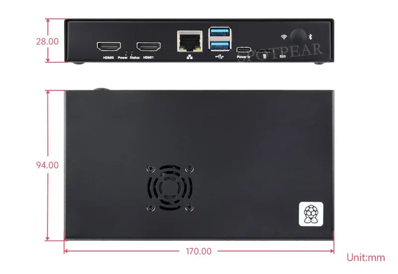 Caja metálica oficial CM5 IO Board, viene con un ventilador de refrigeración sin escobillas de CC, combinado con la ventilación del flujo de aire, mejor disipación del calor