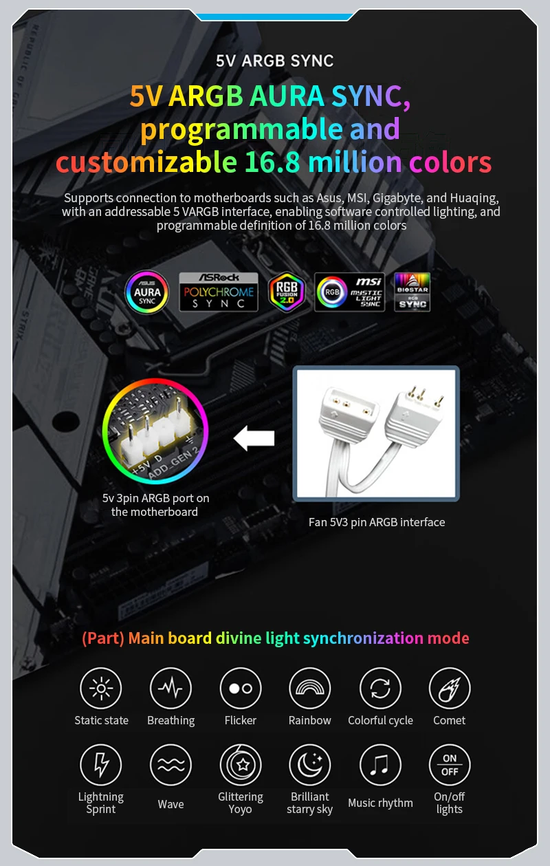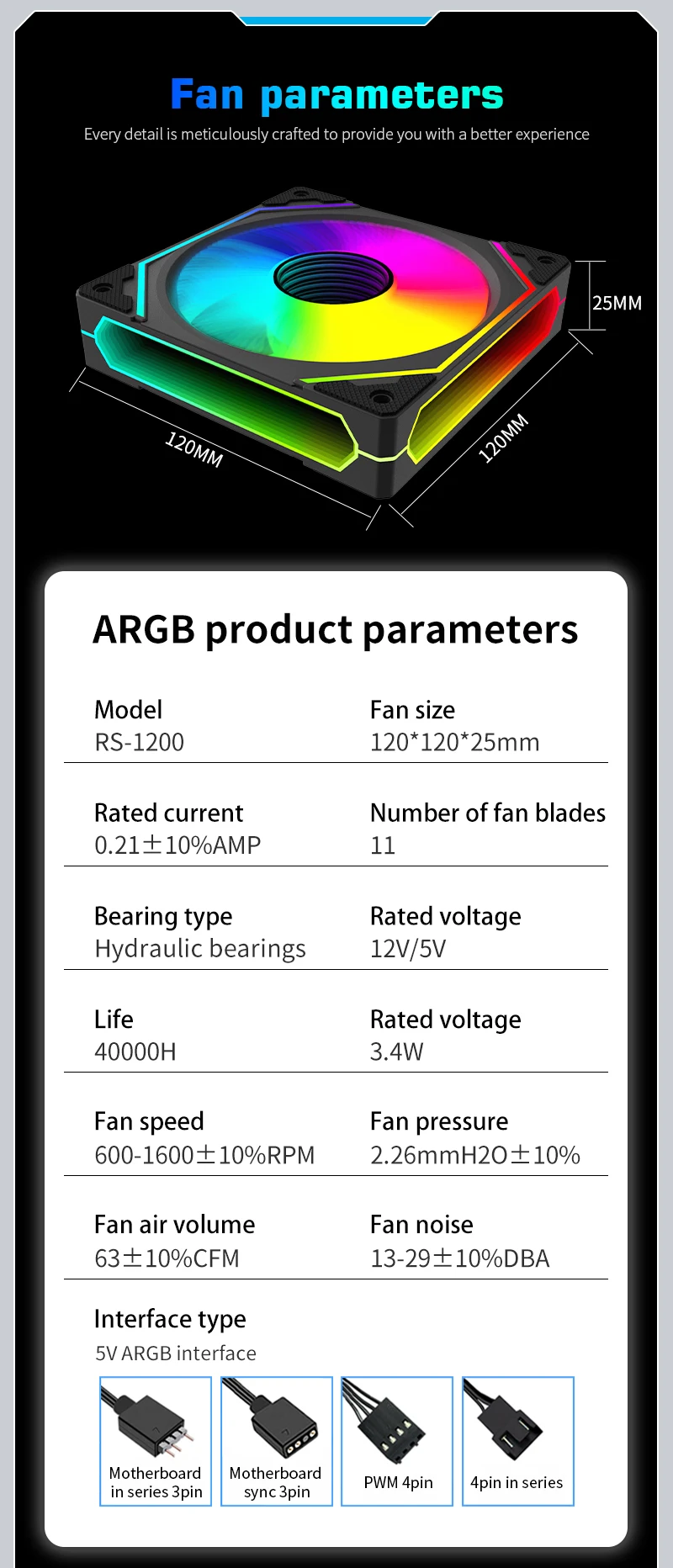 Nota: 6PRO no es un ventilador de empalme, cada ventilador viene con cable ARGB+PWM