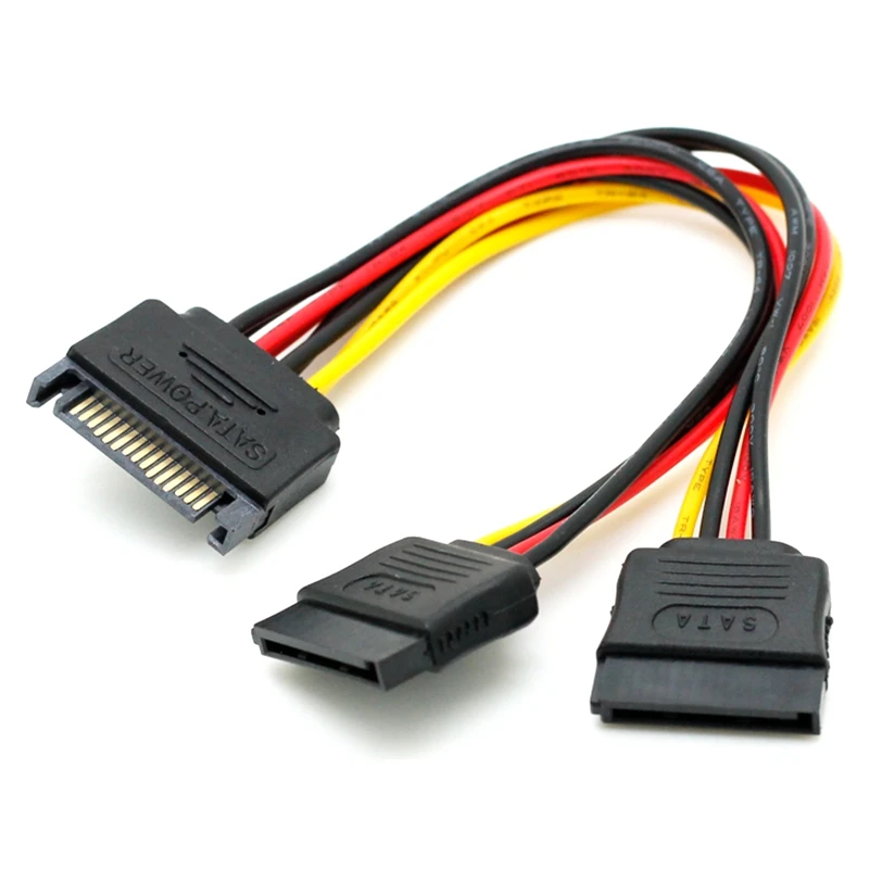 ATA one-to-two power cord SATA one male to two female SATA power extension cords are made of high-quality copper core, 18AWG wire, and the total length of the cable is 20CM.