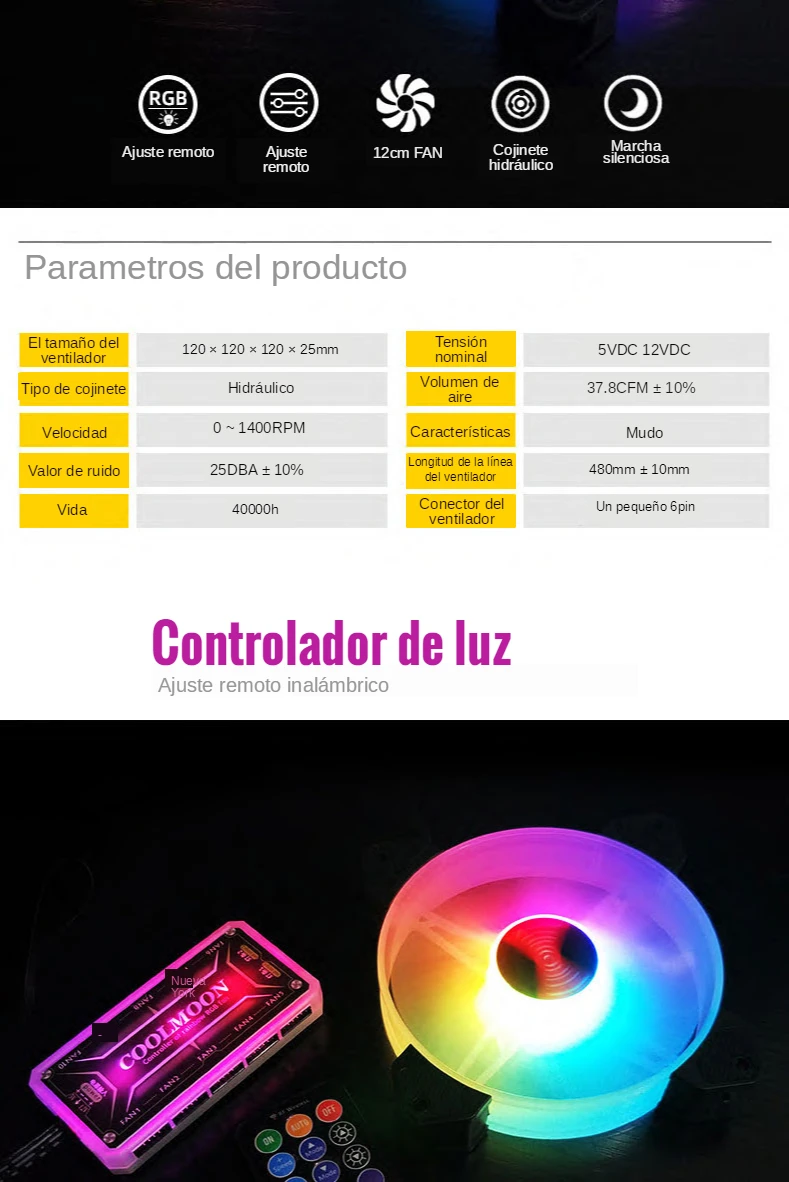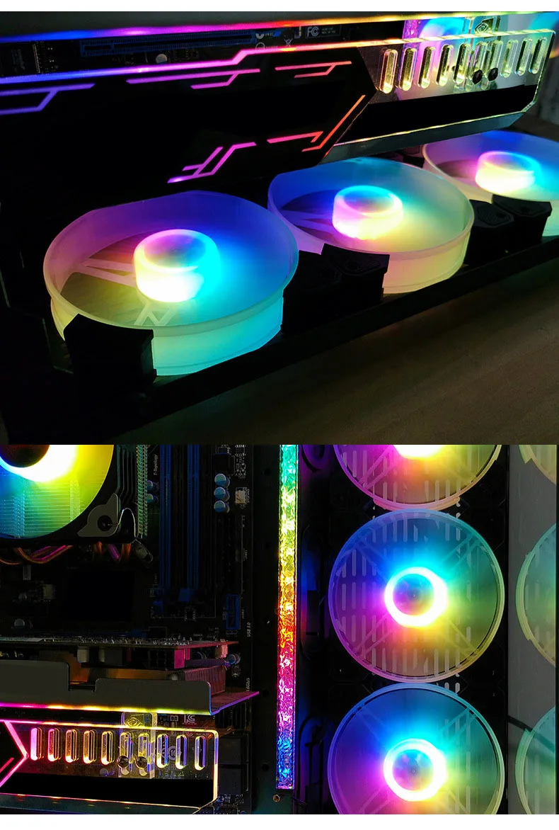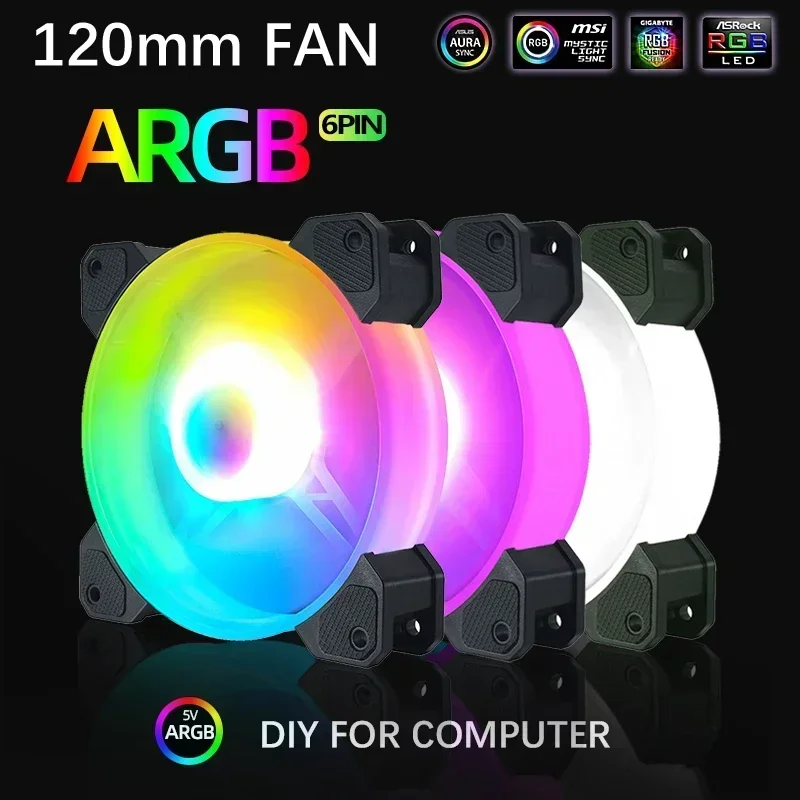 Comprar Caja de computadora Ventilador de 120 mm RGB 6PIN Lámpara colorida Radiador Enfriador Mudo PC 5 V DC ARGB Ventilador Chasis Ventiladores Aura Sync