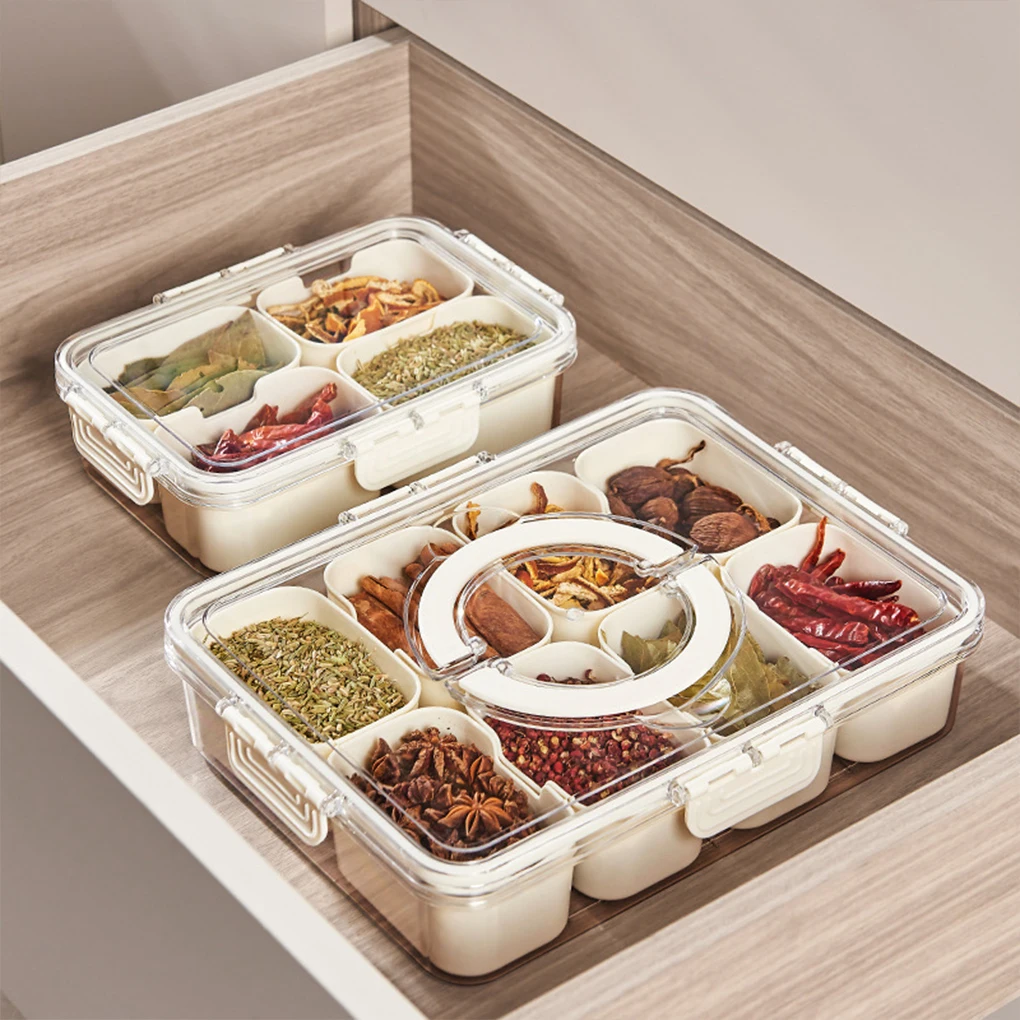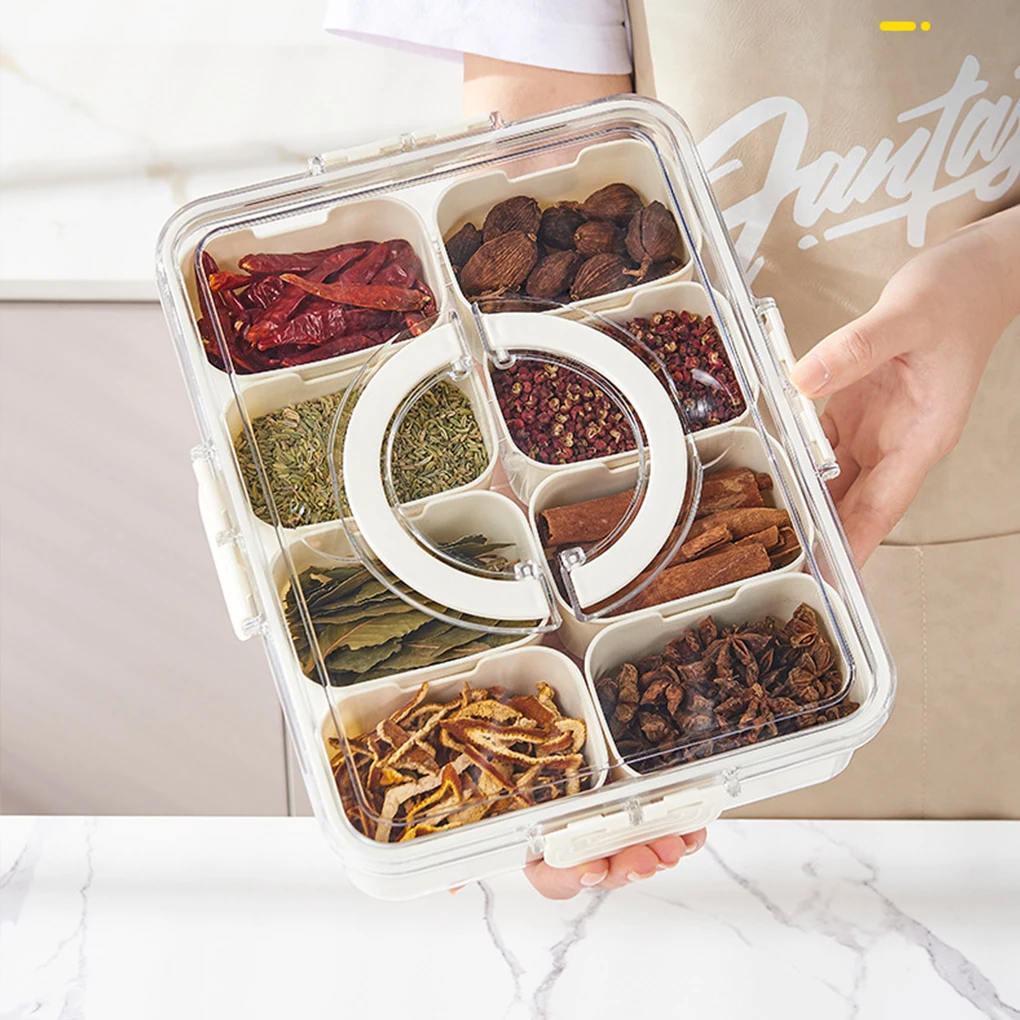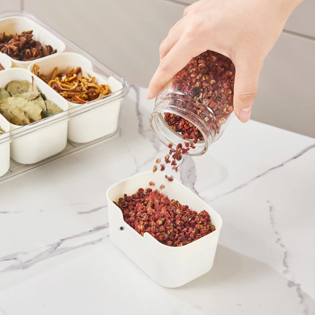 Comprar Caja de condimentos de sal y pimienta, tapa transparente, tarro de especias, chile en polvo, azucarero, contenedor de almacenamiento, caja de aperitivos, 4/8 rejillas