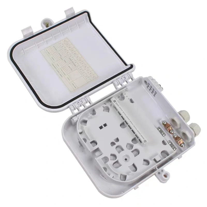 Caja de distribución FTTH de 8 núcleos IP65 blanca 210*180*50mm caja de conexiones de fibra óptica exterior interior impermeable 1*8 caja de fusión