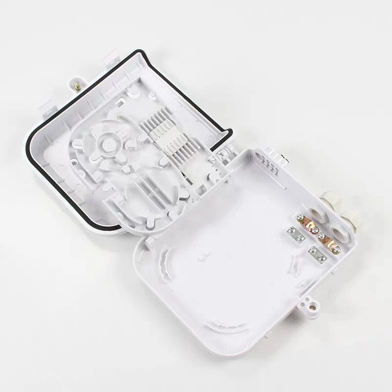 Caja de distribución FTTH de 8 núcleos IP65 blanca 210*180*50mm caja de conexiones de fibra óptica exterior interior impermeable 1*8 caja de fusión