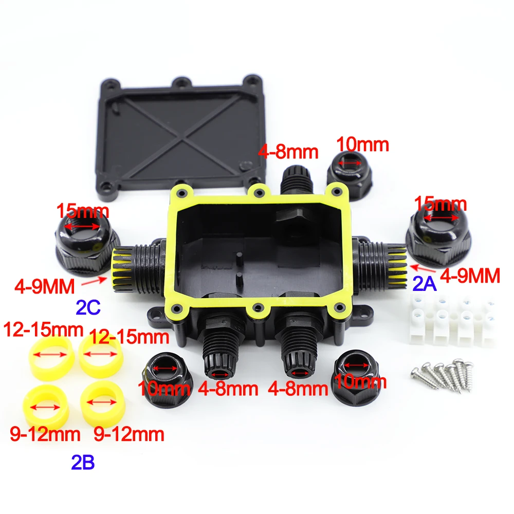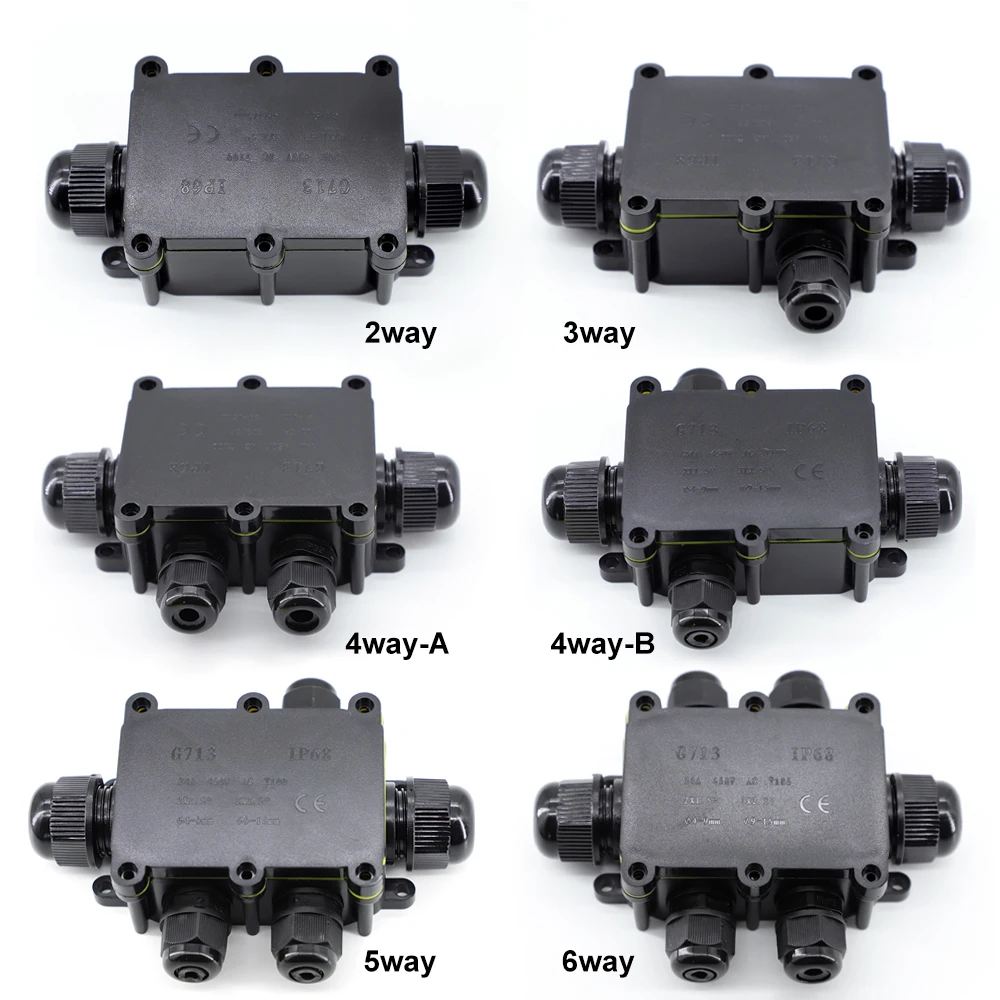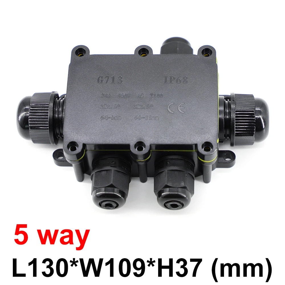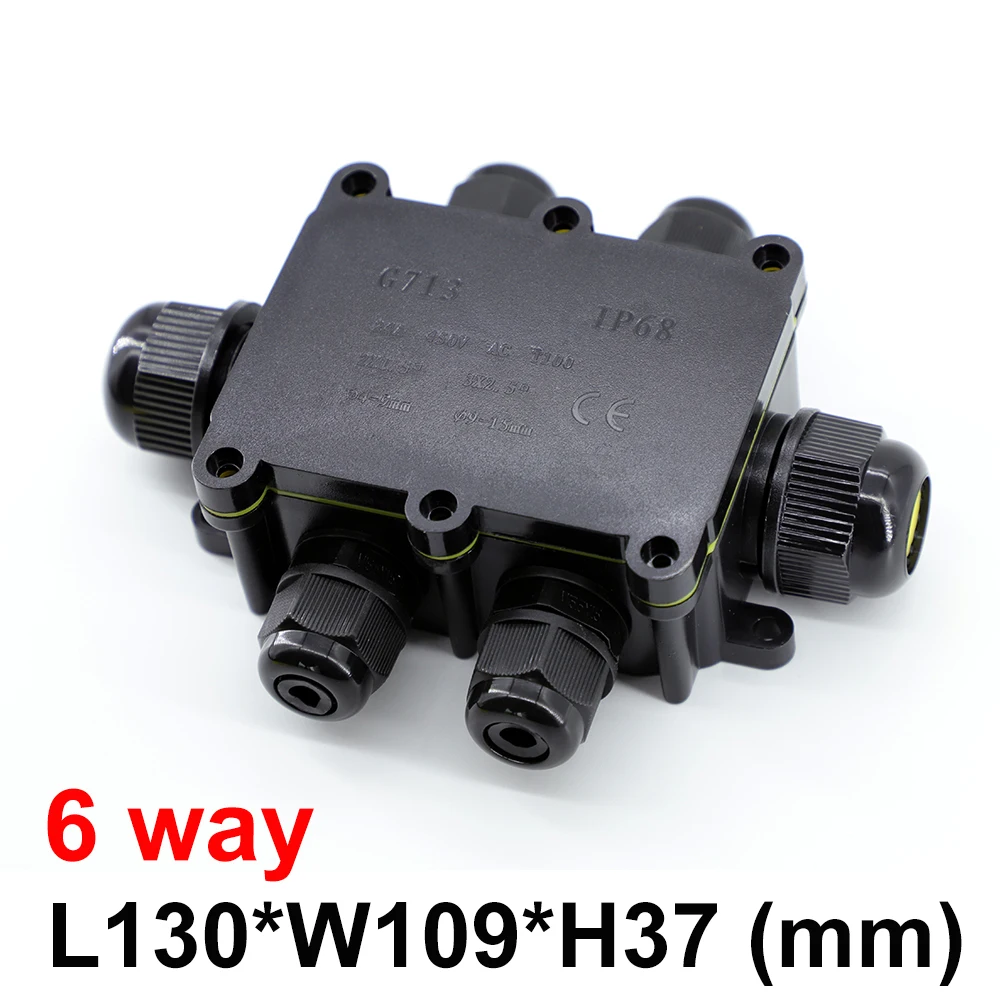 Comprar Caja de conexiones impermeable para exteriores IP68: negra, caja de conector de 2/3/4/5/6 vías con plástico y terminal para PC, diseñada para cables enterrados