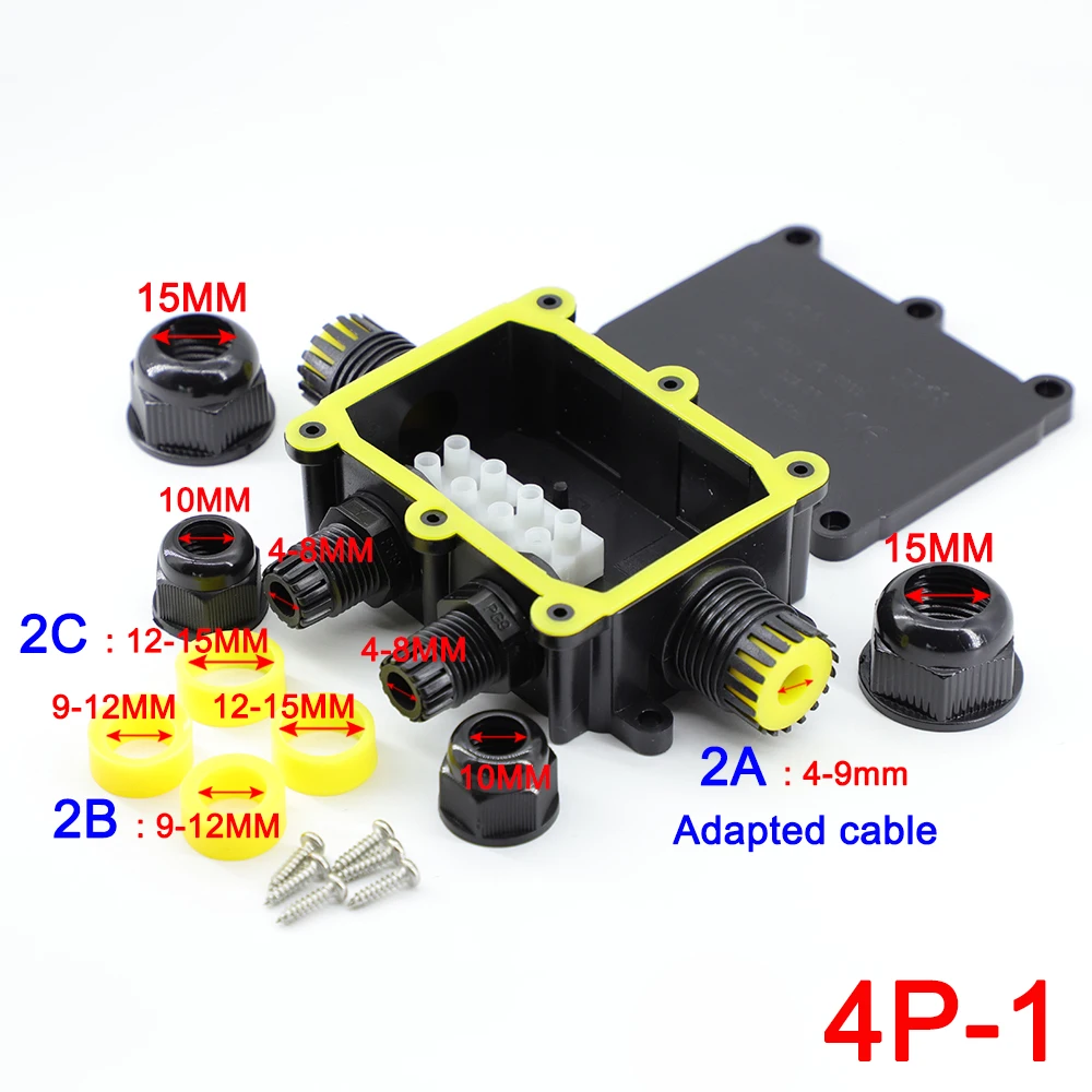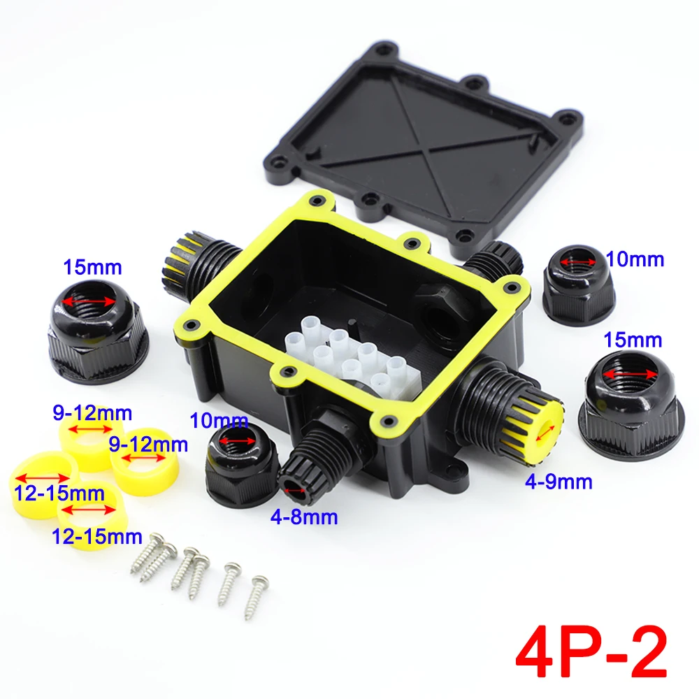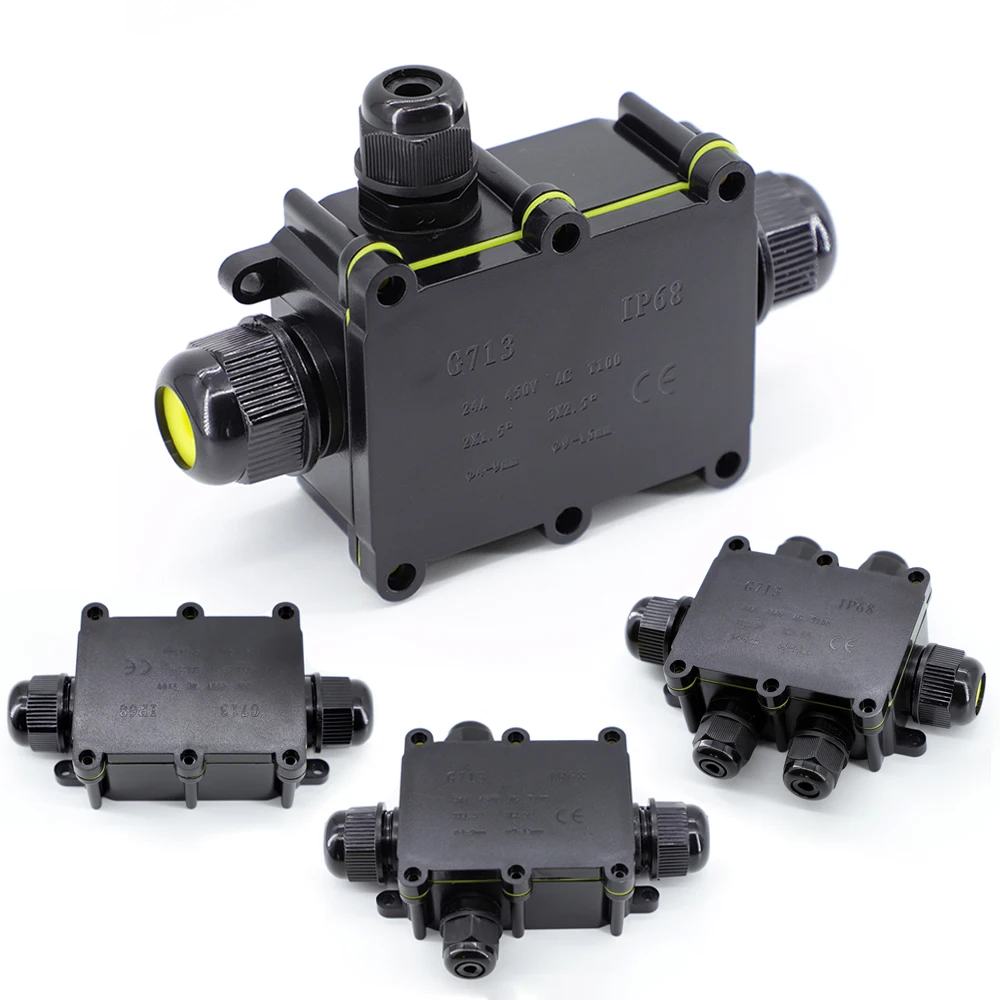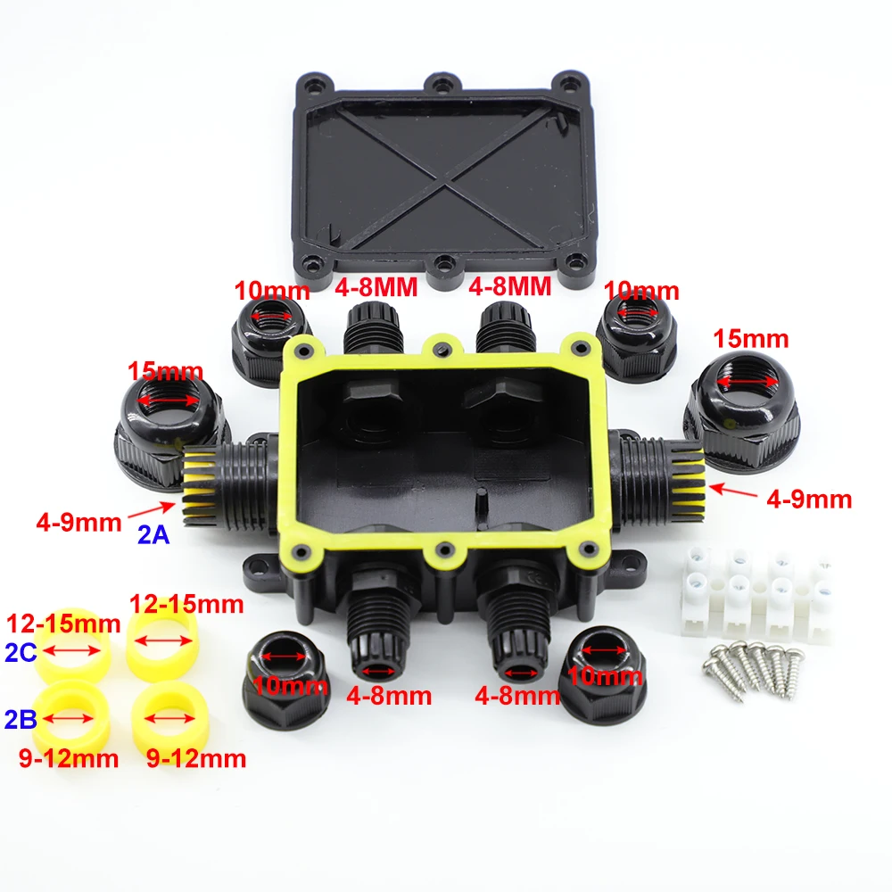 Comprar Caja de conexiones impermeable para exteriores IP68: negra, caja de conector de 2/3/4/5/6 vías con plástico y terminal para PC, diseñada para cables enterrados