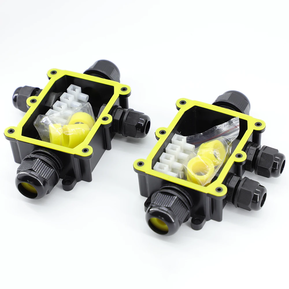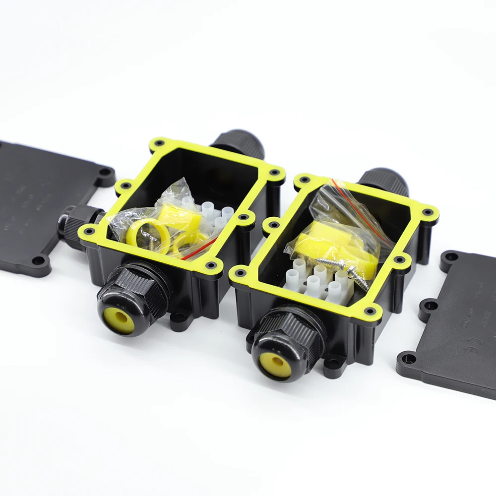 3.Terminales de plástico resistentes al agua IP68/a prueba de humedad/polvo/resistente a los rayos UV, se pueden instalar como cajas de conexiones externas, ampliamente utilizados en instalaciones impermeables al aire libre, farolas, luces enterradas, luces de jardín, focos exteriores, etc.