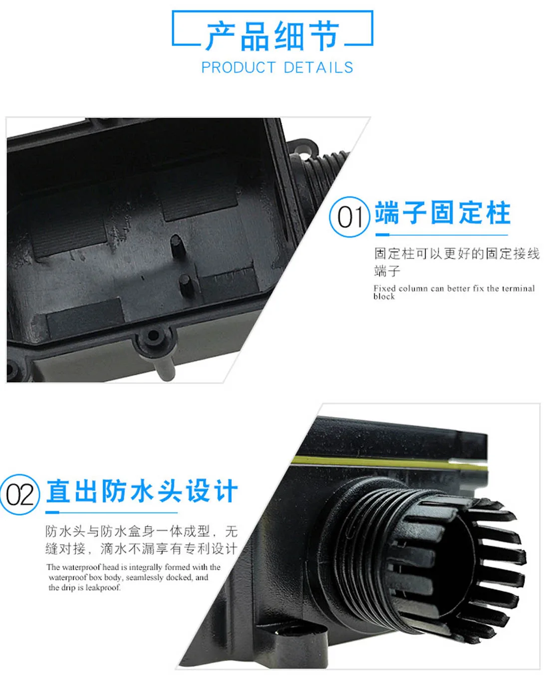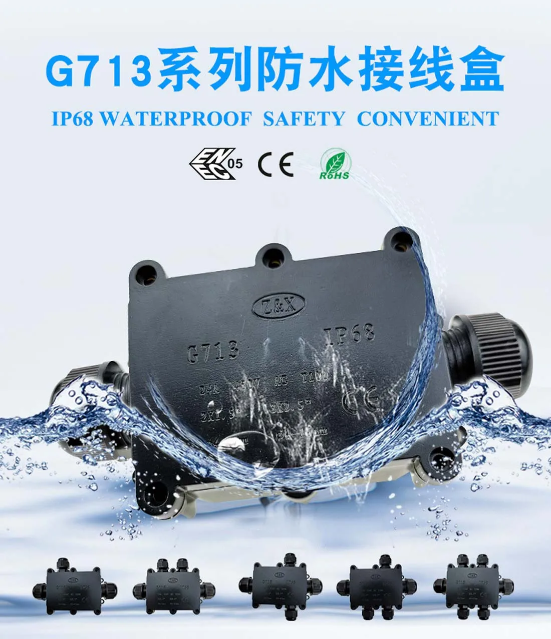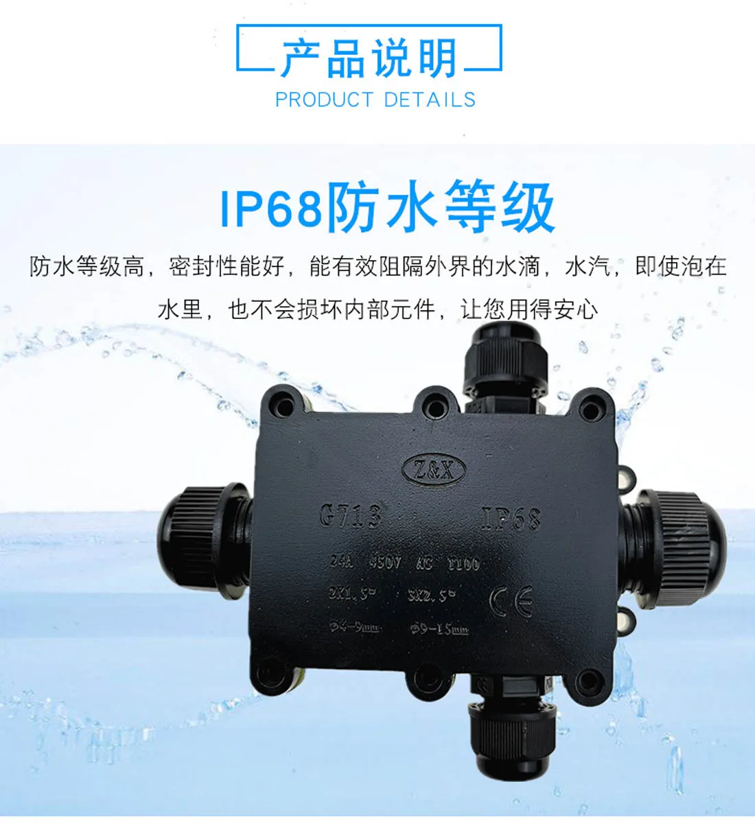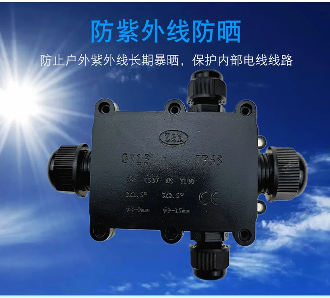 Caja de conexiones IP68 resistente al agua y al polvo.