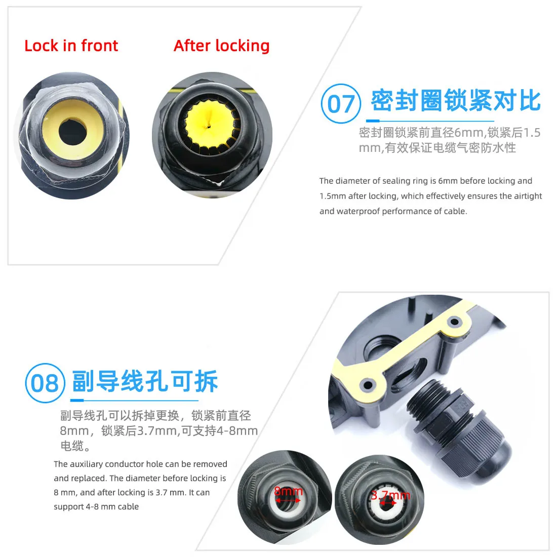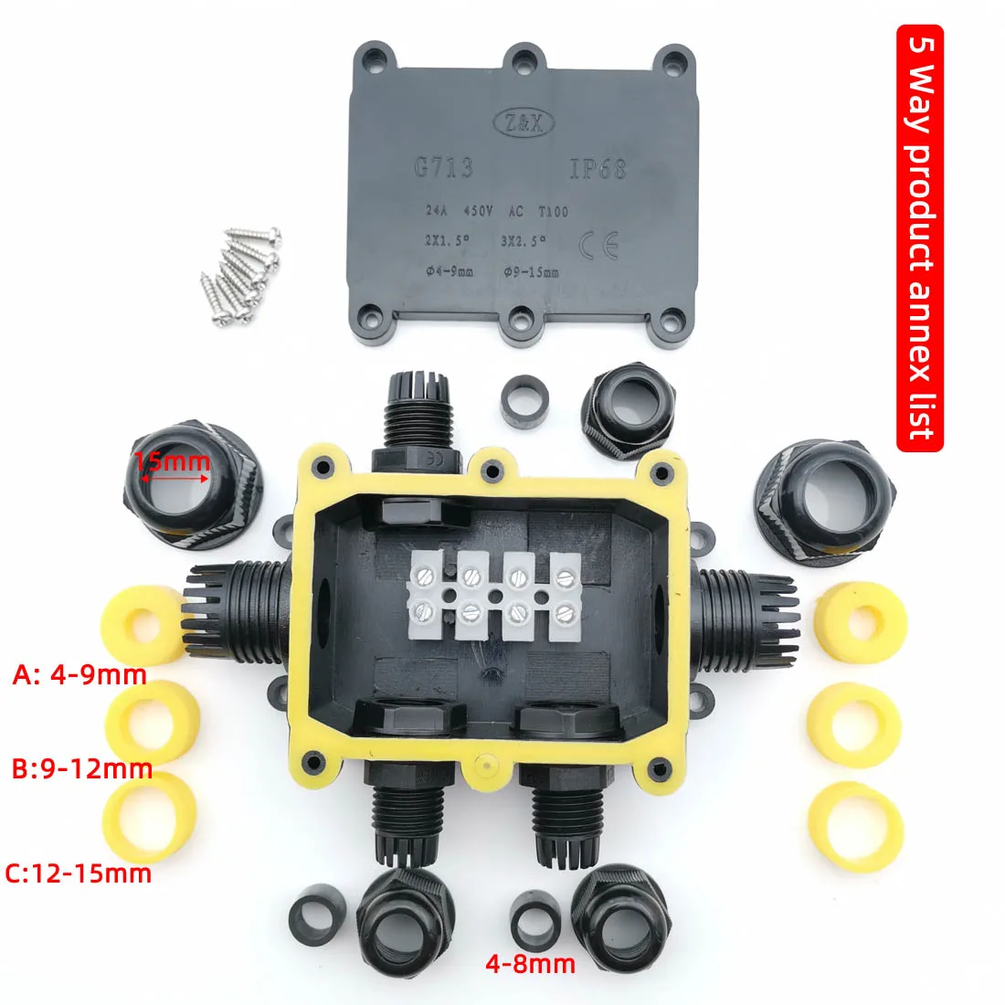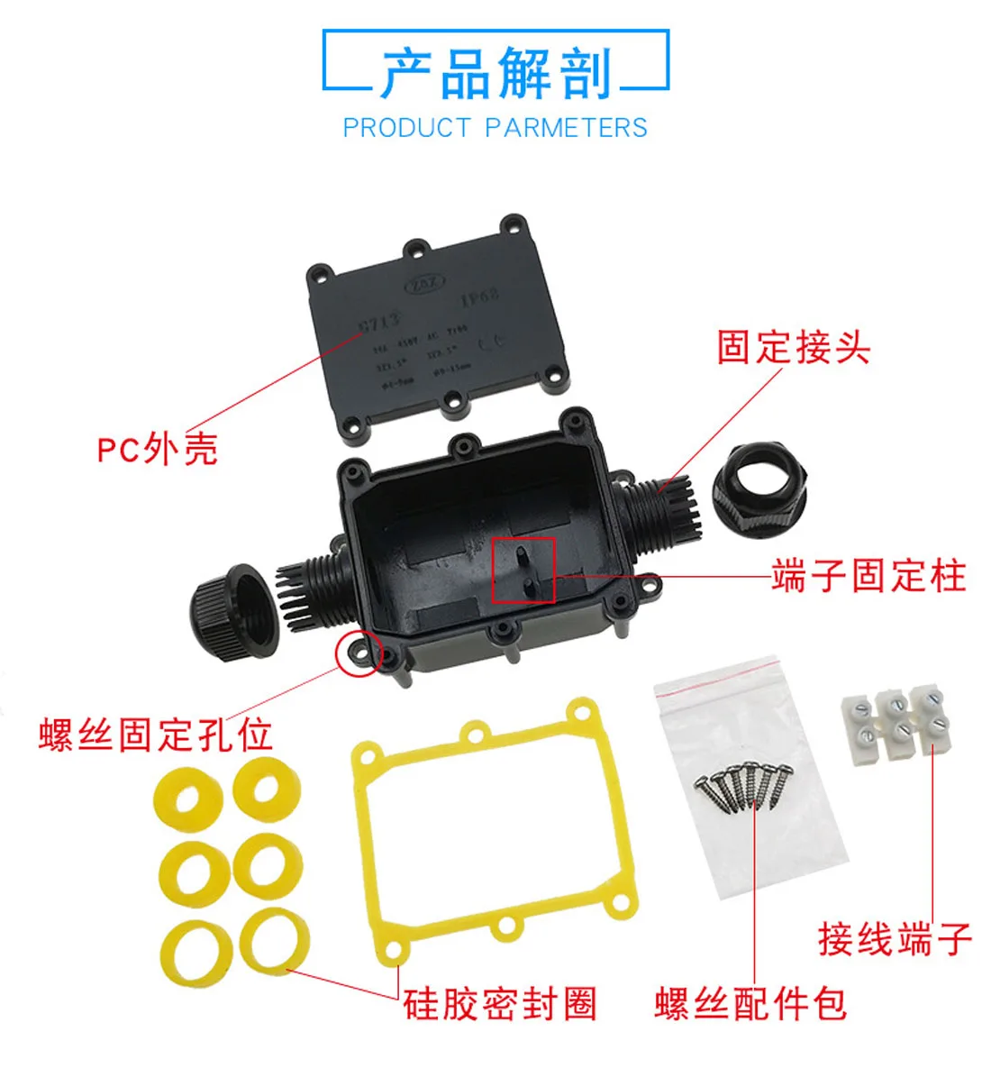 Caja de conexiones IP68 resistente al agua y al polvo.