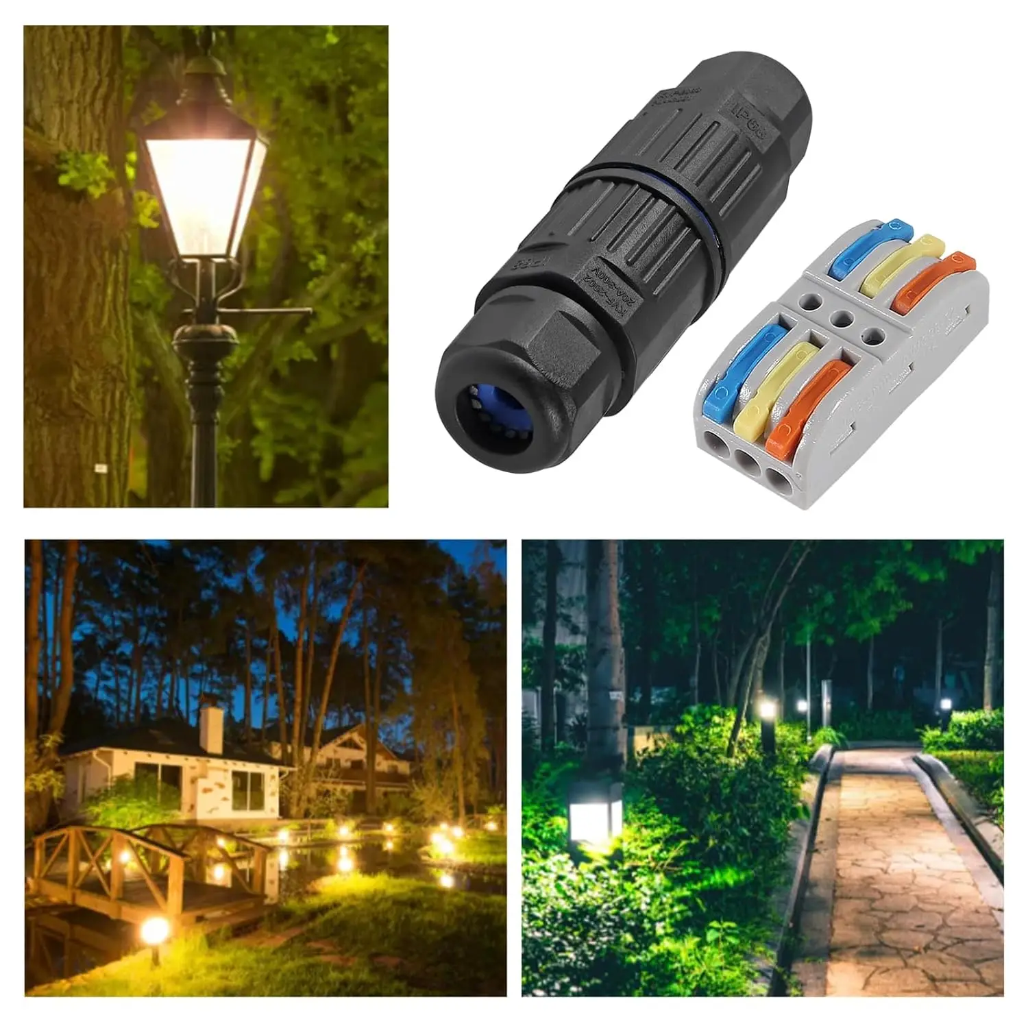 Adecuado para conexión de cables en interiores o exteriores, como luces de tres pruebas, luces de jardín, luces de túnel, reflectores LED, luces de paisaje, lámparas de pared, bahía alta, lámparas de dosel, conexión de cables de alimentación de máquinas, conexión de cables de vehículos. etc. También es una buena herramienta de bricolaje para reparar o extender sus cables de alimentación; Adecuado para ingeniería costera, de río o subacuática, ingeniería subterránea.