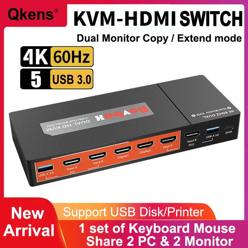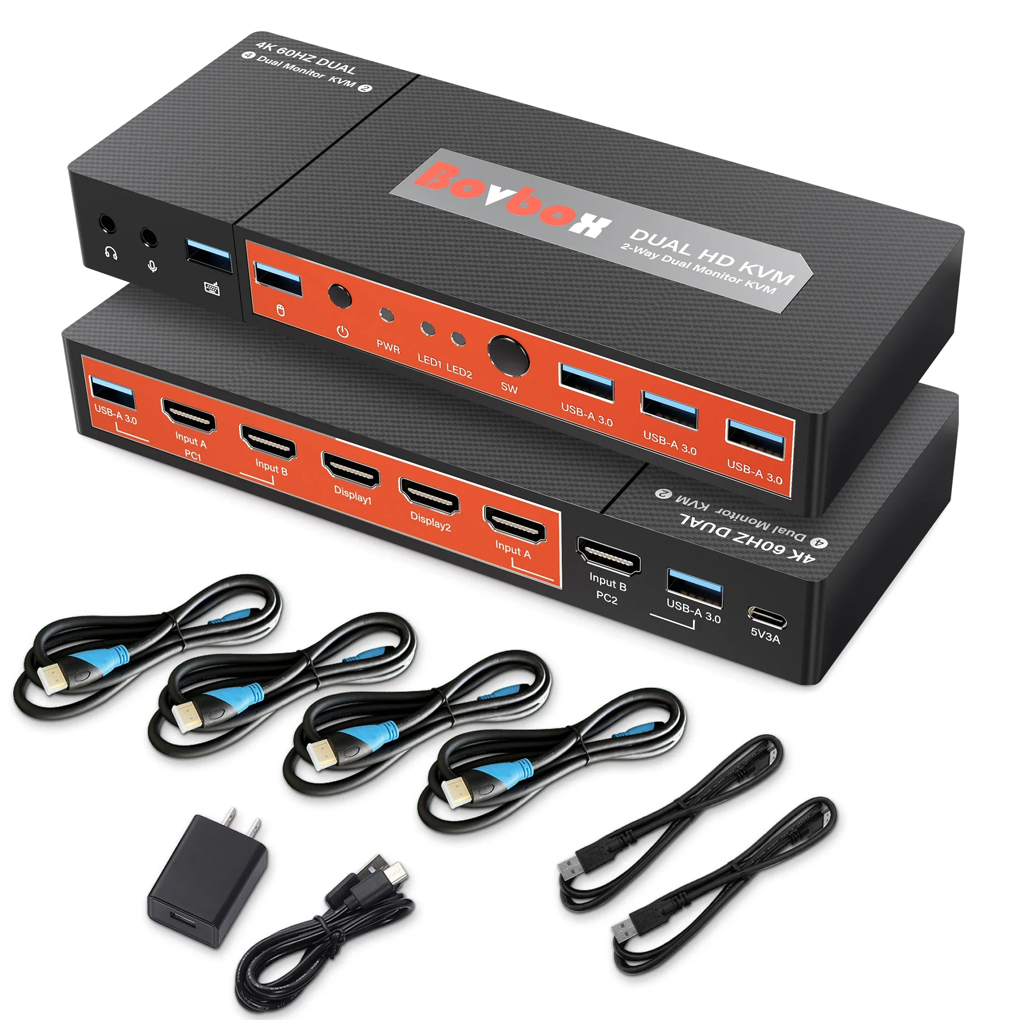 Comprar Caja de conmutación KVM 4K, 60Hz, HDMI, USB 3,0, HUB, un teclado, Control de ratón, 2 ordenadores, PC y monitores, 2 en 2, salida, convertidor de vídeo, interruptor