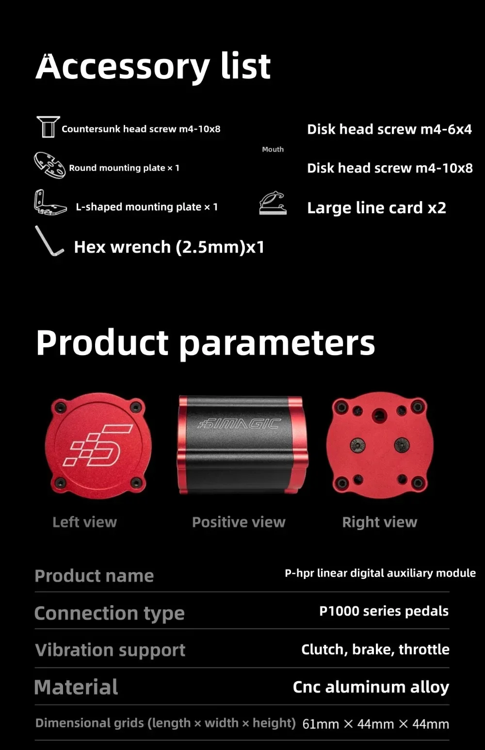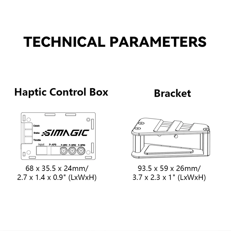 Descripción: El Simagic P2000-HCB es un convertidor de caja de control exclusivo diseñado para soportar los reactores de pedal felticos P-HPR.Este componente esencial garantiza que su feliz sistema de retroalimentación funcione sin problemas y Se integra perfectamente con los pedales Simagic P2000.Diseñada con precisión y diseñada para durar, esta caja de control es una adición vital para los corredores de SIM que buscan mayor realismo e inmersión. - Convertidor de caja de control exclusivo: diseñado específicamente para respaldar los reactores de pedal felices P-HPR, lo que permite recibir comentarios felices avanzados.- Construcción duradera: una carcasa de plástico hace que dure mucho tiempo.- Instalación versátil: se puede instalar en los pedales del acelerador, freno o embrague del juego de pedales P2000. - Pedales Simagic P2000: Diseñados exclusivamente para usar con el juego de pedales P2000. - Material: carcasa de plástico- Compatibilidad: P2000- Puntos de instalación: Acelerador, freno y embrague- Tamaño de la caja de control: 63,5 mm x 59 mm x 26 mm/3,7" x 2,3" x 1" (largo x ancho x alto)