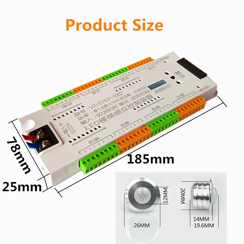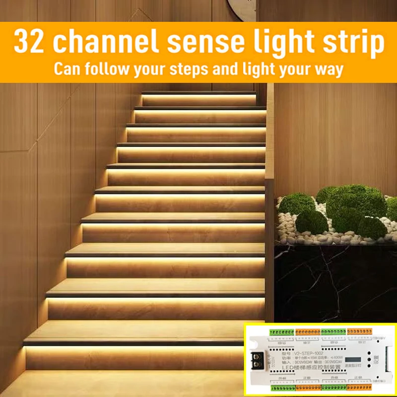 Comprar Caja de controlador de Sensor de movimiento LED para escaleras, atenuador de luz nocturna PIR para interiores, tira Led Flexible, CC de 12V y 24V, 32 canales