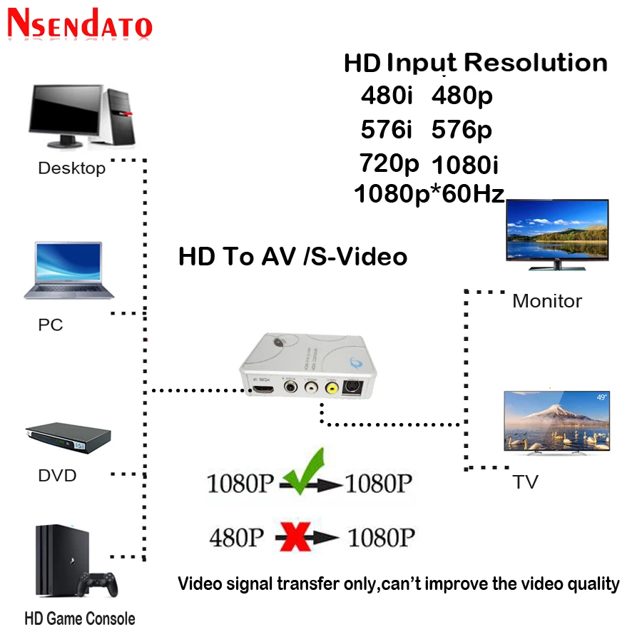 Convertidor de Audio y video HD, caja de conversión de Audio HD a AV RCA s-video, adaptador 1080P HD2AV, soporte NTSC PAL CVBS para PS4 TV Monitor DVD