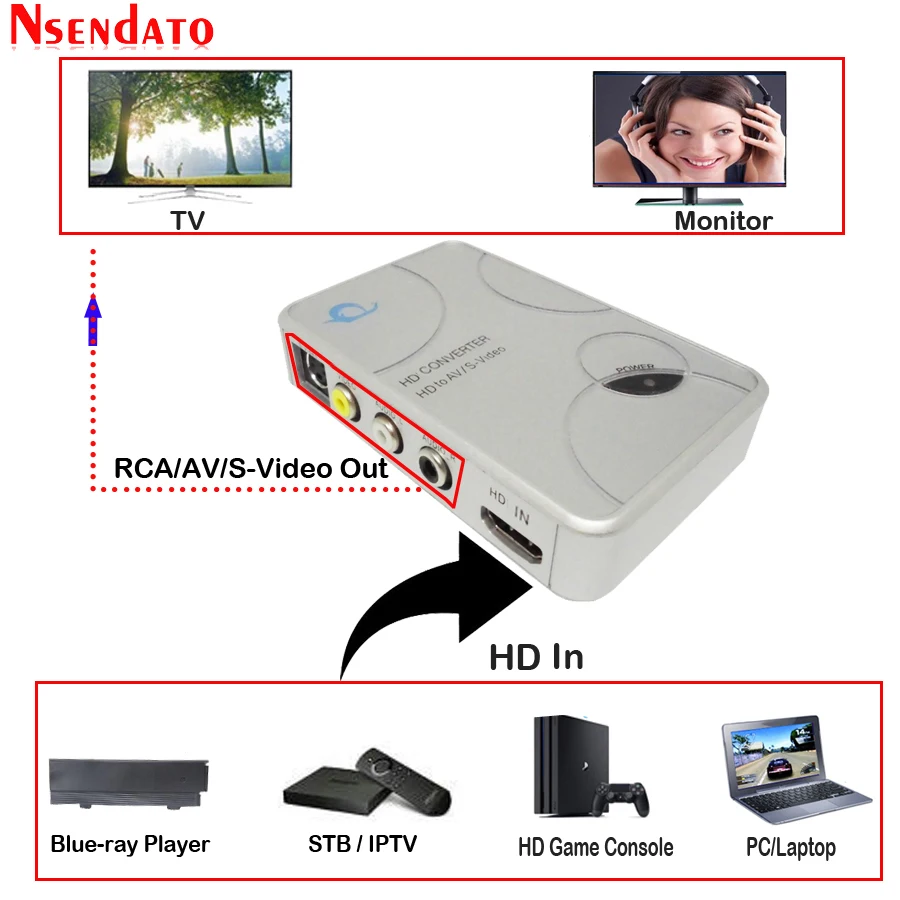 Comprar Caja convertidora de Audio y vídeo HD Compatible con HDMI a AV RCA S-Video adaptador convertidor 1080P HDMI2AV con NTSC PAL CVBS para PS4 TV DVD