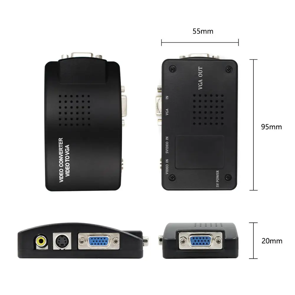 Comprar Caja Convertidora de vídeo RCA AV CVBS SVIDEO compuesta VGA a VGA, adaptador AV a Video VGA para HDTV, TV, PC, DVD, Xbox, proyector WebCOM