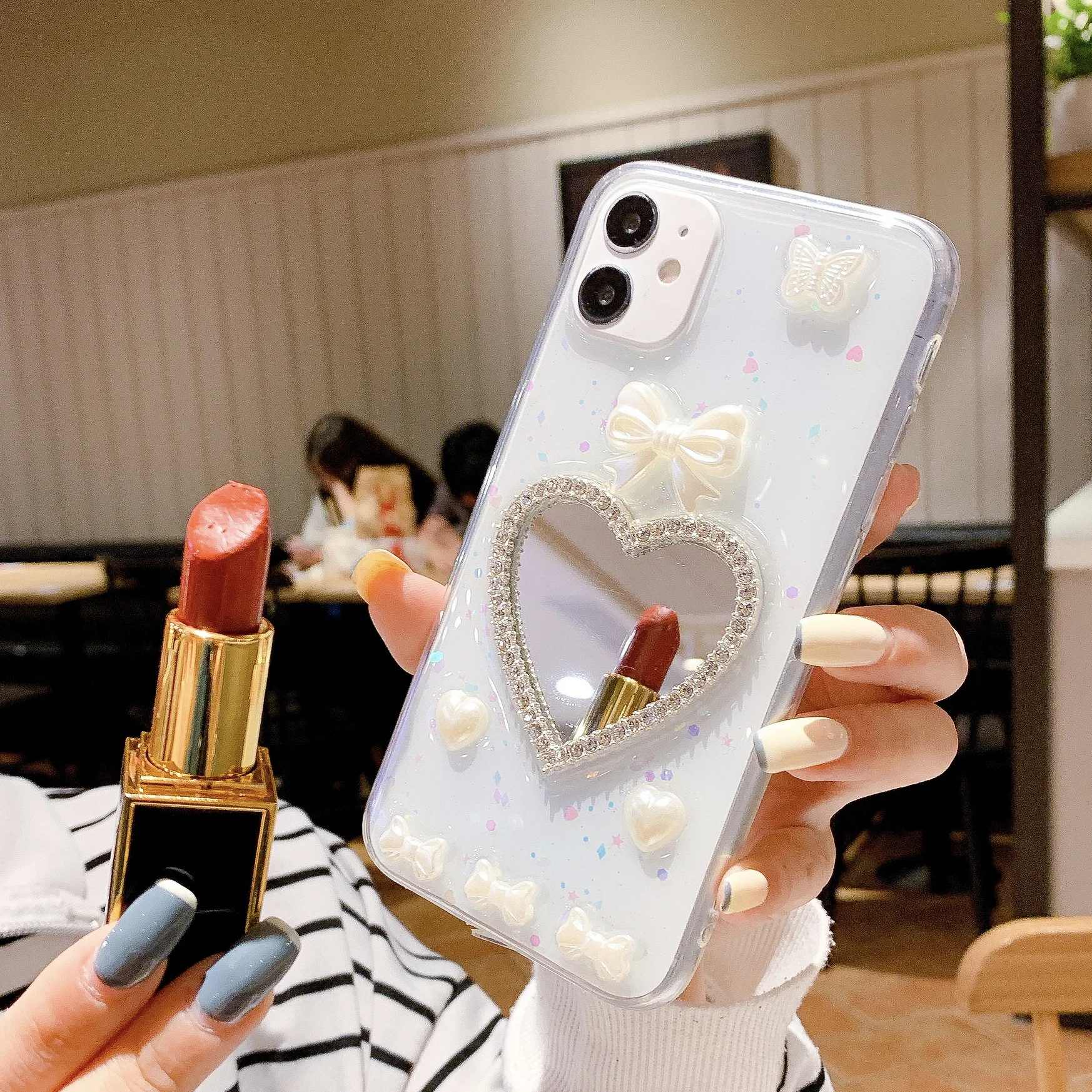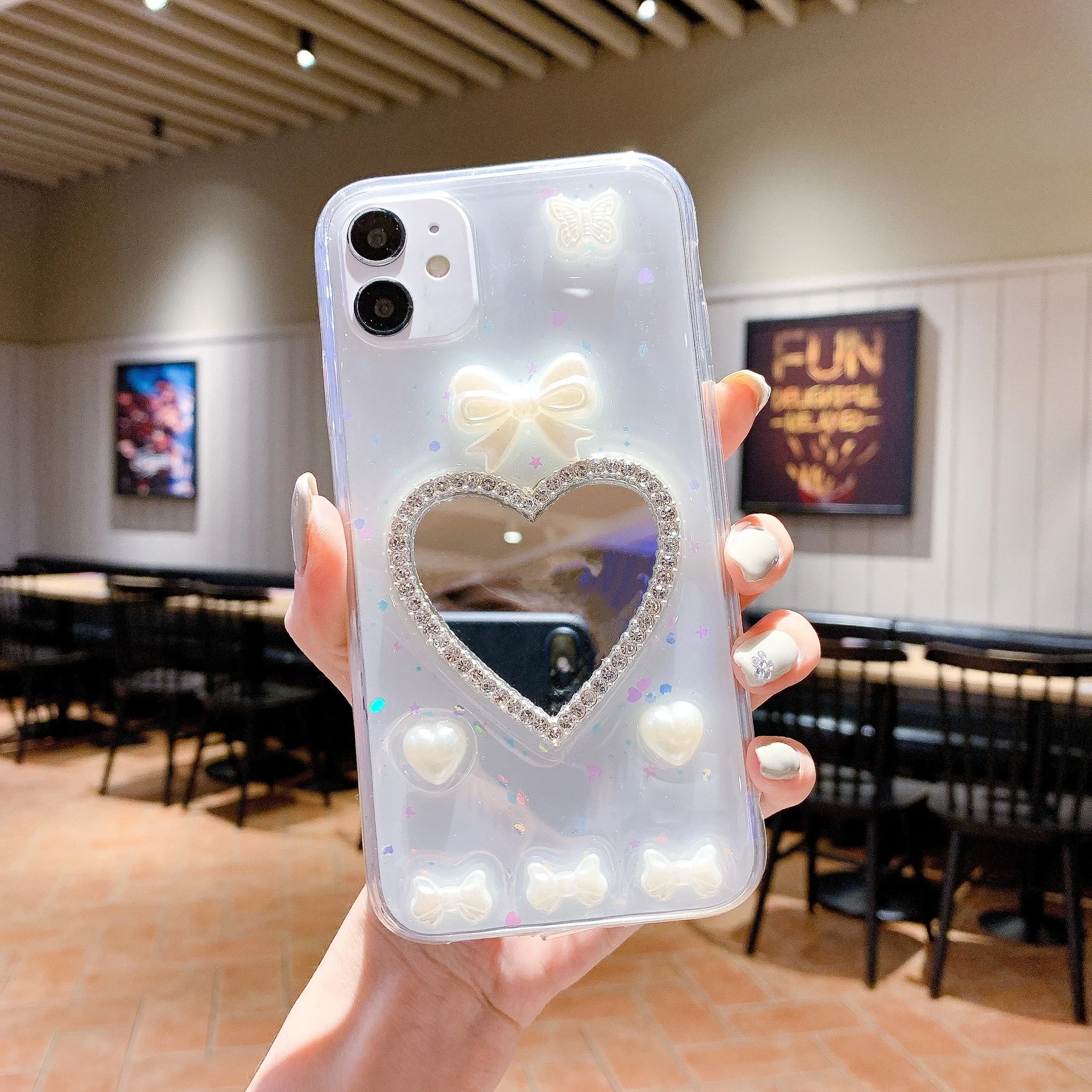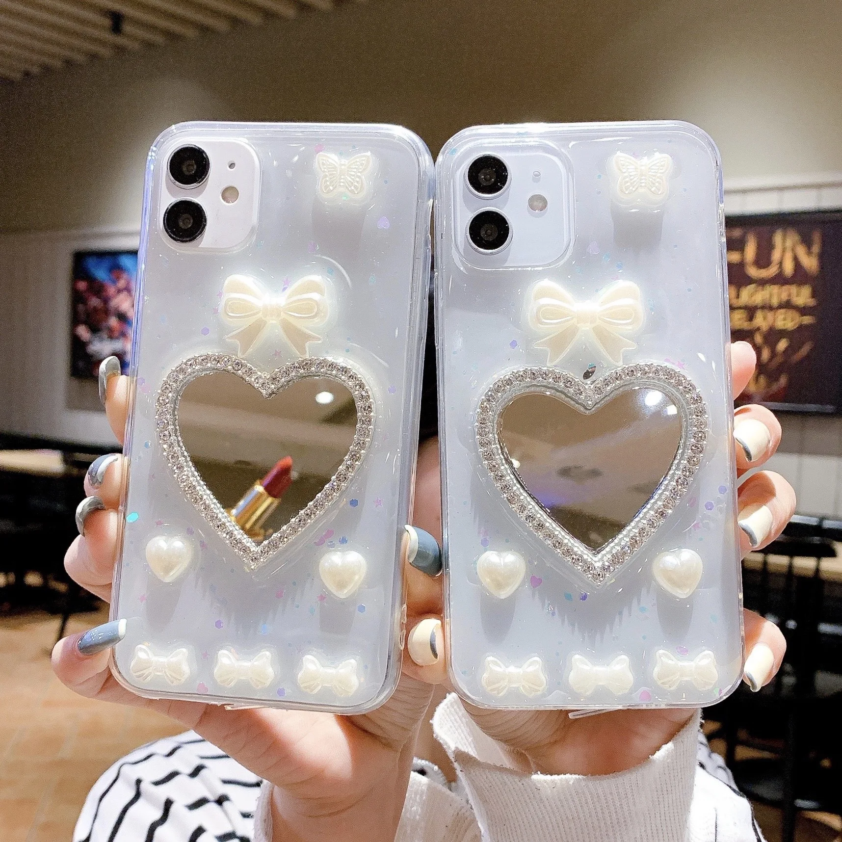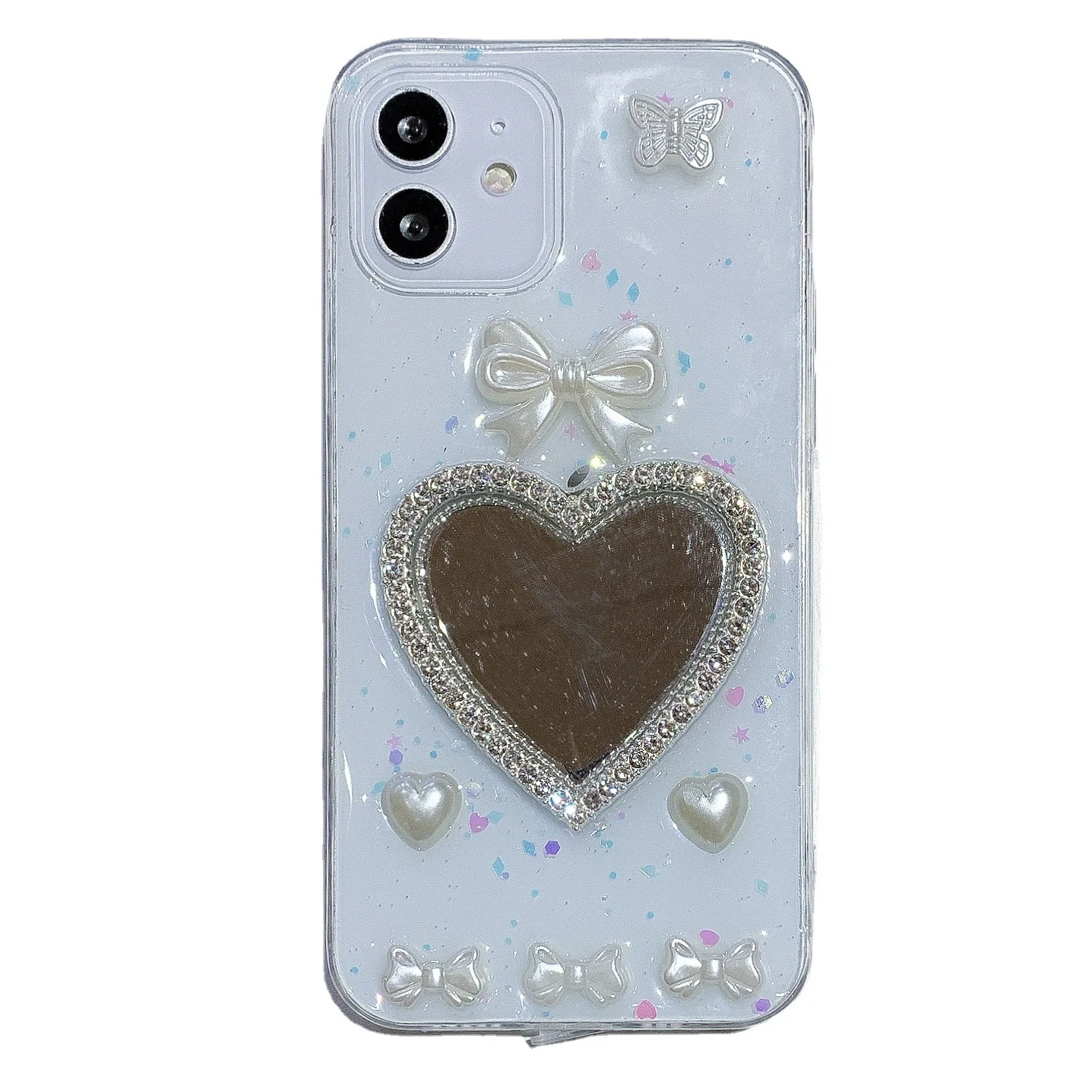 Comprar Caja del teléfono del espejo del maquillaje del corazón para Apple 12/13iphone11XR caja transparente