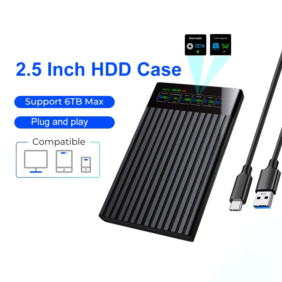 Comprar Caja de disco duro de 2,5 pulgadas SATA a USB3.1, caja de disco duro externo, pantalla LED, caja de almacenamiento de disco duro HDD SSD de 6Gbps para PC