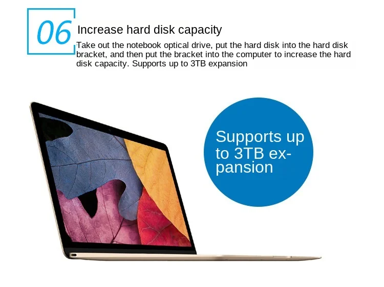 Aluminio 2nd HDD Caddy 9,5mm 12,7mm SATA 3,0 Optibay caja de disco duro carcasa adaptador de DVD 2,5 SSD para ordenador portátil