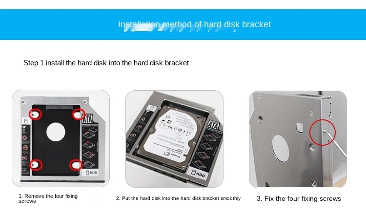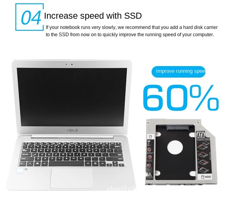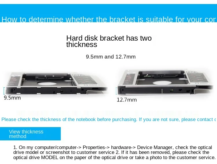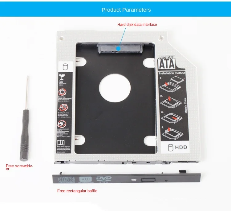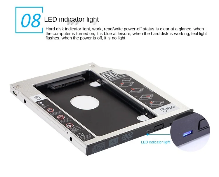 Caja de disco duro de aluminio para portátil, carcasa adaptadora de DVD, SSD 9,5, SATA 12,7 Optibay, 3,0mm, 2,5mm, 2nd HDD Caddy