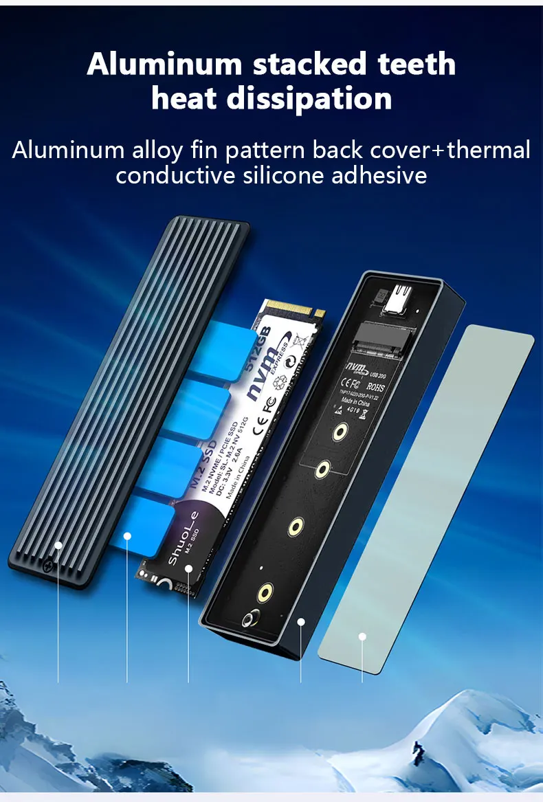 Fabricada con aluminio duradero, esta caja para disco duro ofrece protección y refrigeración robustas para su dispositivo de almacenamiento.
