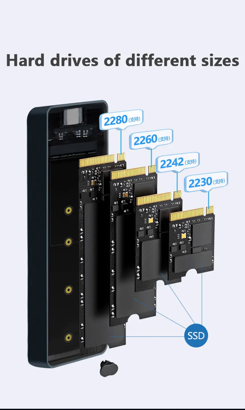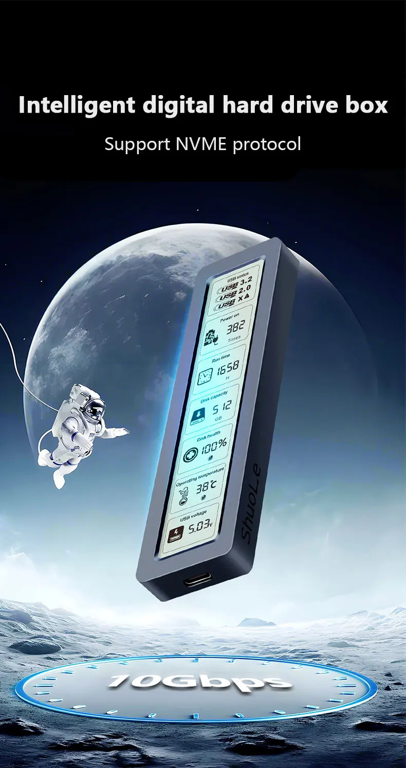 Comprar Caja de disco duro Digital inteligente, carcasa externa M2 con pantalla de visualización, protocolo NGFF/NVMe de 10Gbps de estado sólido, pantalla grande