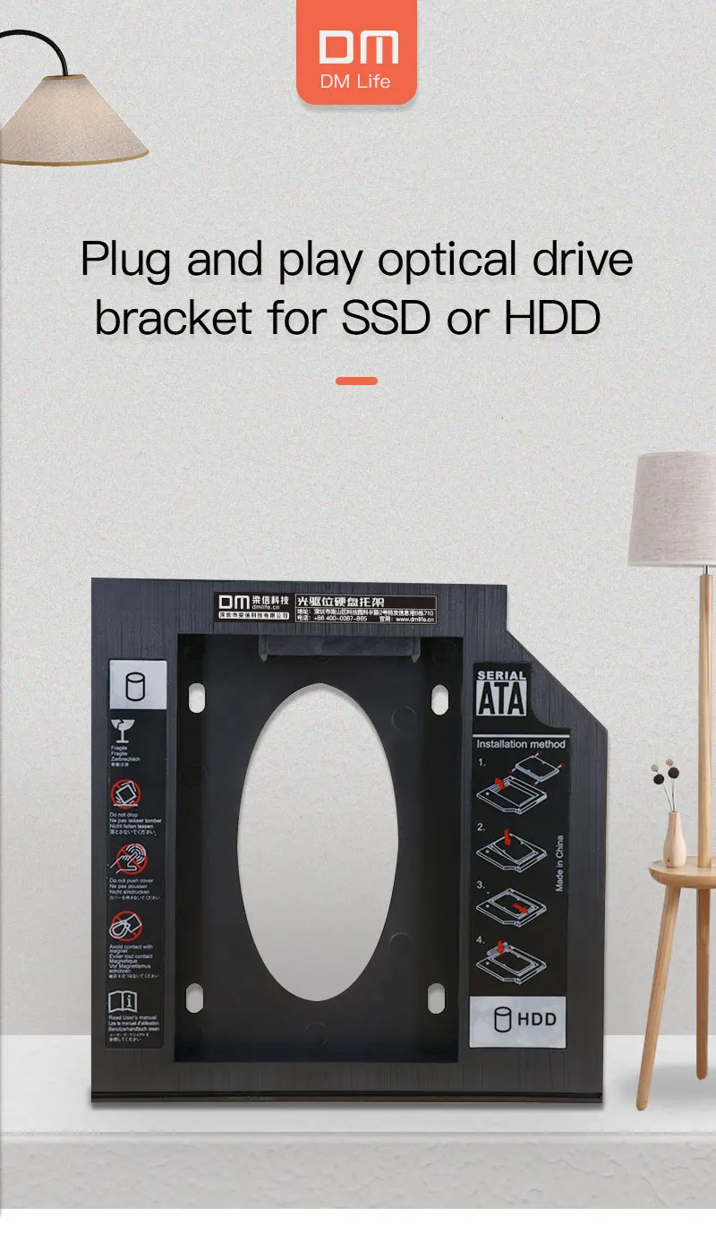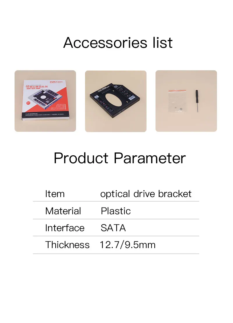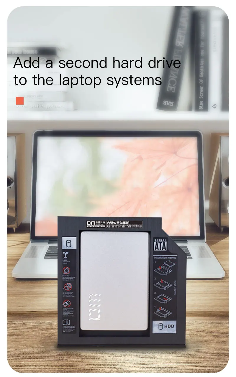 Comprar Caja de disco duro DM DW95 HDD Caddy 9,5mm, caja de plástico Optibay SATA 3,0, adaptador de DVD 2,5 SSD 2TB para portátil y CD-ROM