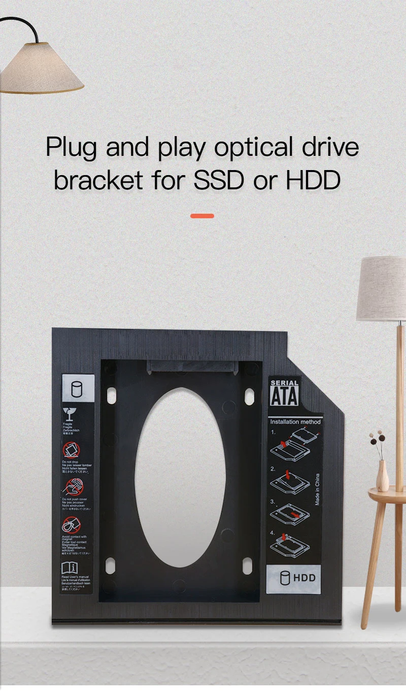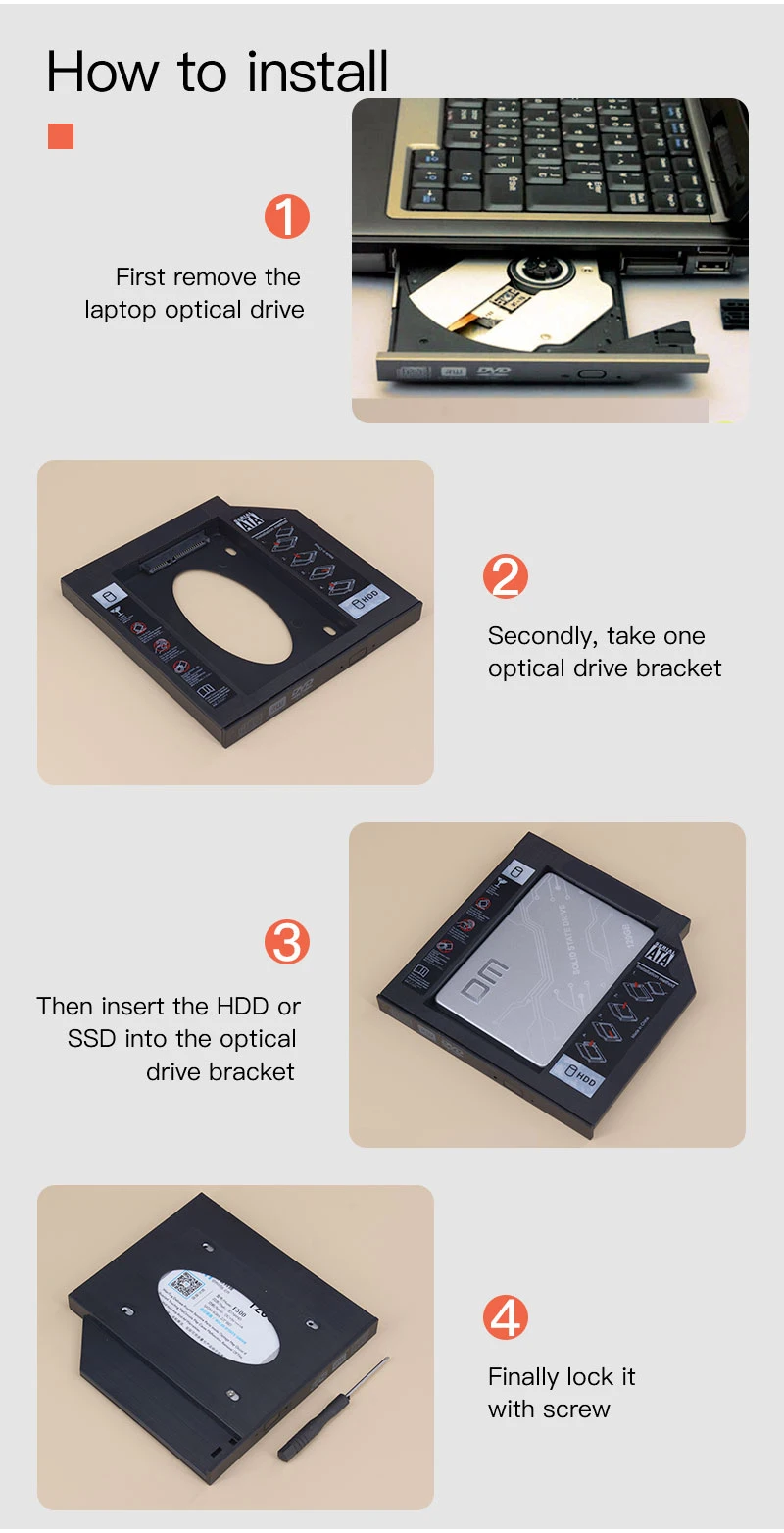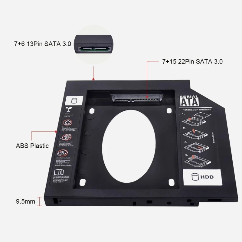 Comprar Caja de disco duro DM DW95 HDD Caddy de 9,5mm, caja de plástico Optibay SATA 3,0, adaptador de DVD 2,5 SSD 2TB para portátil y CD-ROM