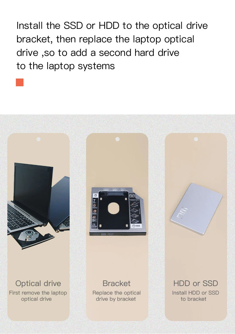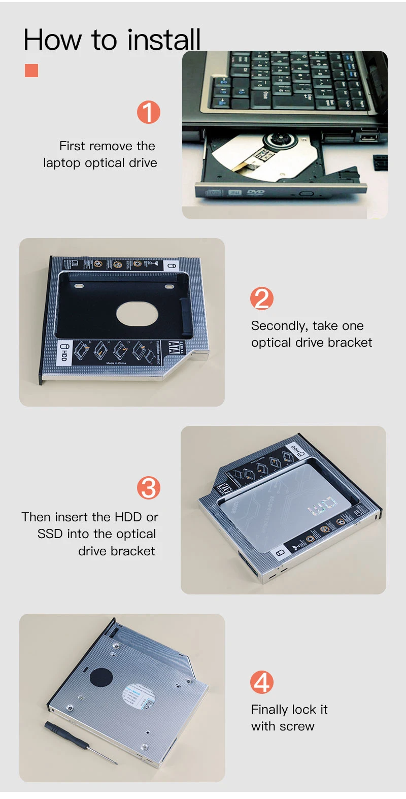 Comprar Caja de disco duro DM DW95S HDD Caddy de 9,5mm de aluminio Optibay SATA 3,0, adaptador de DVD 2,5 SSD 2TB para portátil y CD-ROM
