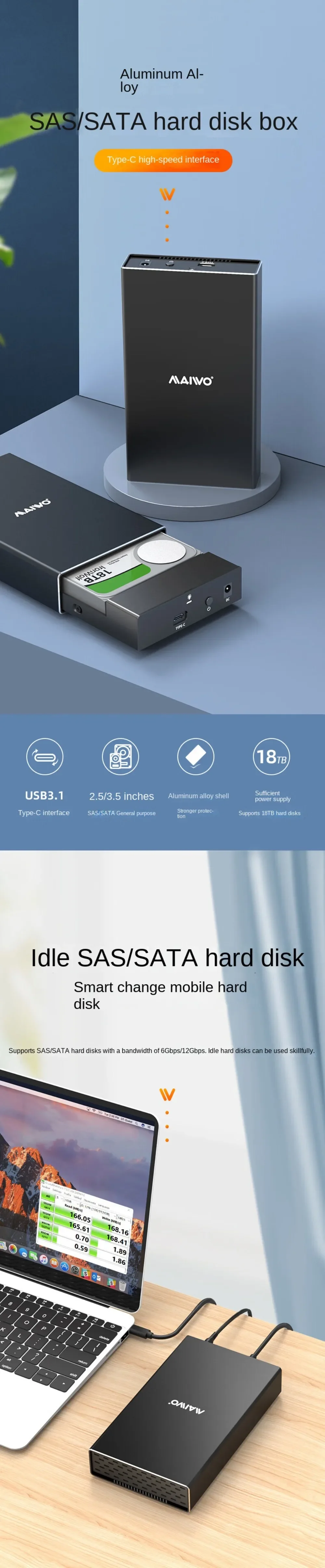 Comprar Caja de disco duro externo MAIWO SAS, unidad de estado sólido mecánica General de 2,5/3,5 pulgadas, adecuada para funda de PC portátil, compatible con 22TB