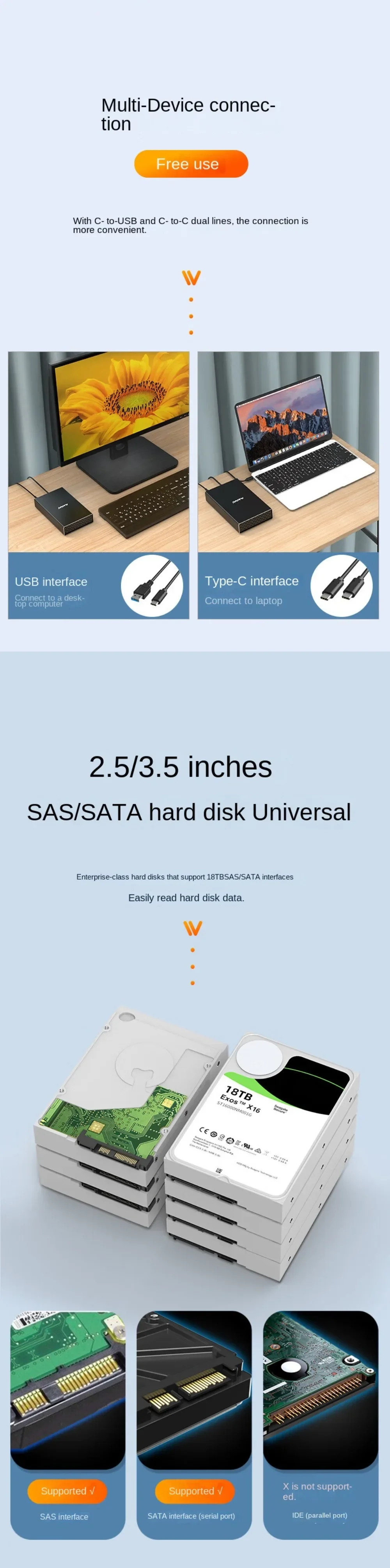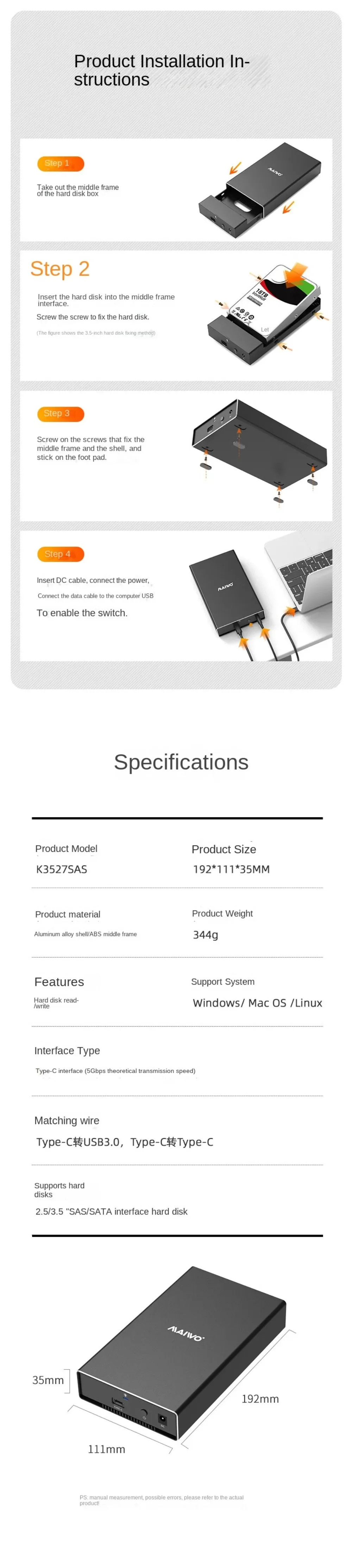 MAIWO Caja/lector de disco duro SAS de 2,5/3,5 pulgadas◆ Este adaptador SAS puede sacar fácilmente archivos de sistemas muertos y unidades de imágenes con sistemas operativos integrados.◆ Esta carcasa de disco duro SAS admite discos duros SAS de 2,5 pulgadas/3,5 pulgadas.◆ Diseño de cubierta deslizante, portátil y de fácil instalación, plug and play.◆ Interfaz USB 3.0, admite lectura y escritura de datos del disco duro SAS.◆ Velocidad de transferencia de alta velocidad de hasta 5 Gbps, perfecta para copias de seguridad de datos y mantenimiento de servidores.◆ Múltiples compatibles con los principales sistemas operativos (Windows/Mac OS/Linux/Android) y funcionan con múltiples dispositivos como computadora portátil/de escritorio/TV/enrutador/PS4/reproductor HD, etc.◆ Ofrecido con una fuente de alimentación independiente de 12 V/2 A, suficiente potencia garantiza una transmisión de datos estableEsta carcasa SAS Adater admite la función de suspensión automática; cuando no hay transferencia de datos, ingresa automáticamente al modo de suspensión◆ Hecho de carcasa de aleación de aluminio, muy compacto y excelente rendimiento de disipación de calor.