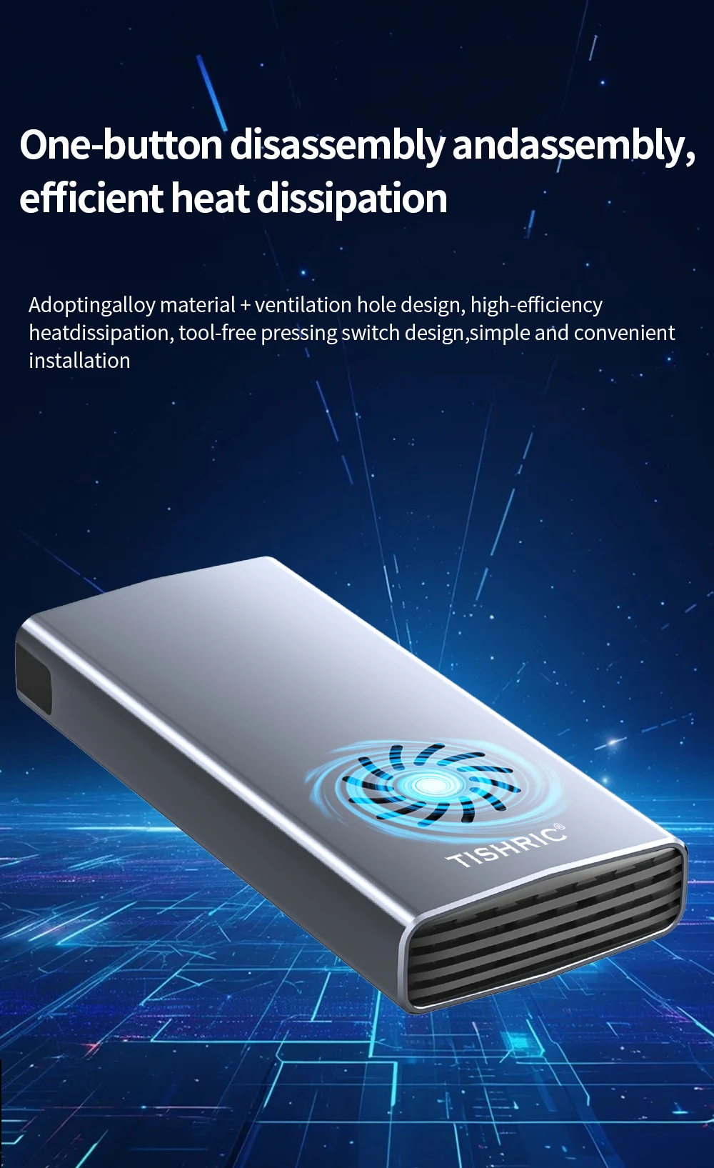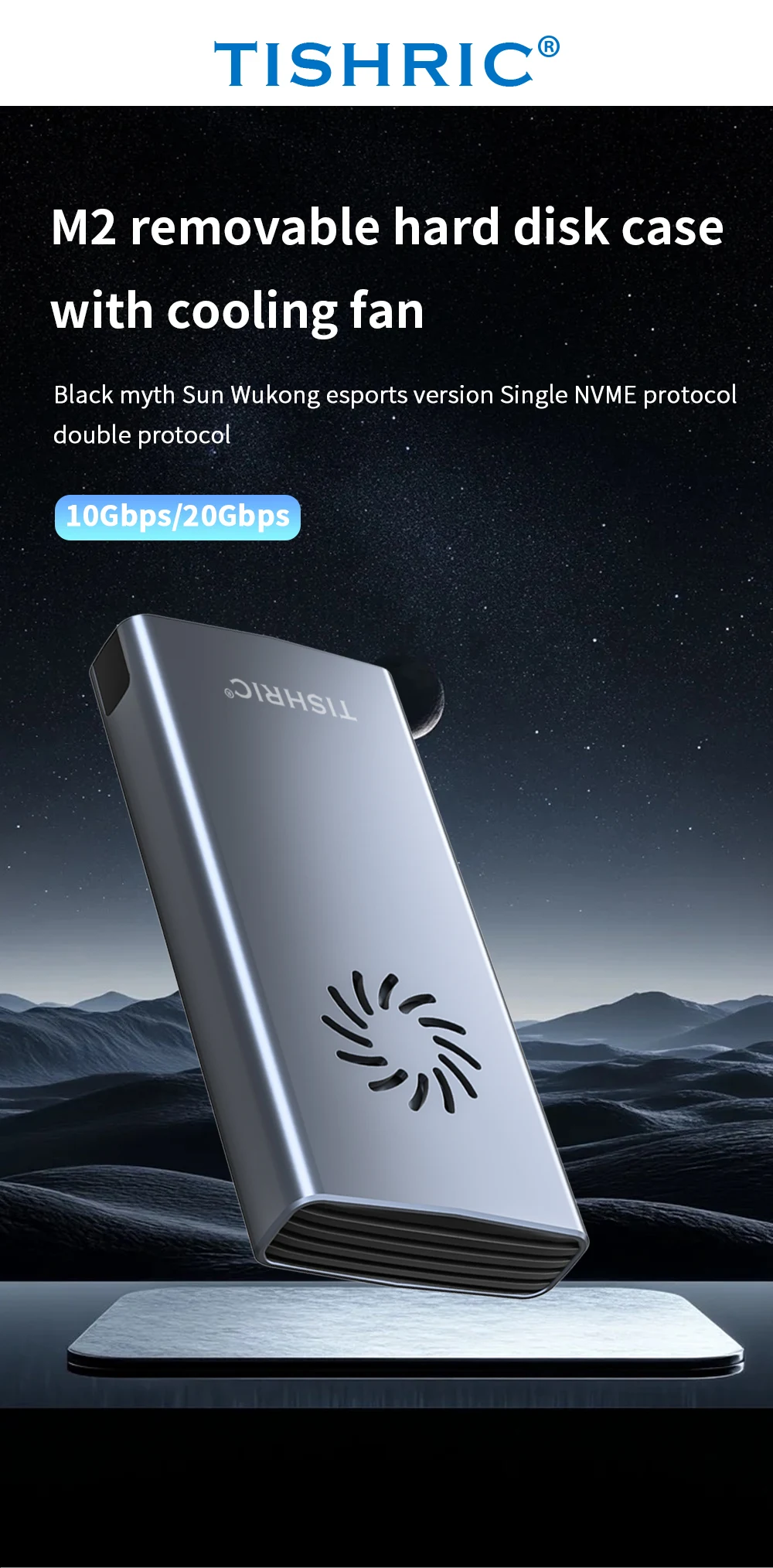 Comprar Caja de disco duro externo TISHRIC M2 NGFF NVME SSD para disco duro USB C carcasa externa con ventilador para juegos portátil PS5/4