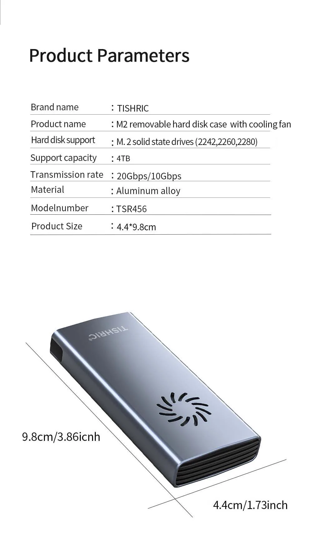 TISHRIC Caja de disco duro externo M2 NGFF NVME Estuche SSD para disco duro USB C Estuche externo con ventilador para computadora portátil de juegos PS5/4