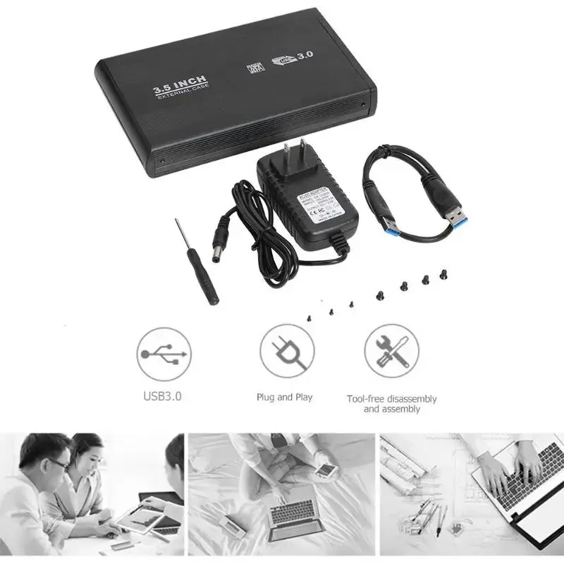 Caja de caja de disco duro de disco duro externo USB 3.0 SATA de 3,5 pulgadas, caja de almacenamiento externa tipo C, compatible con disco duro