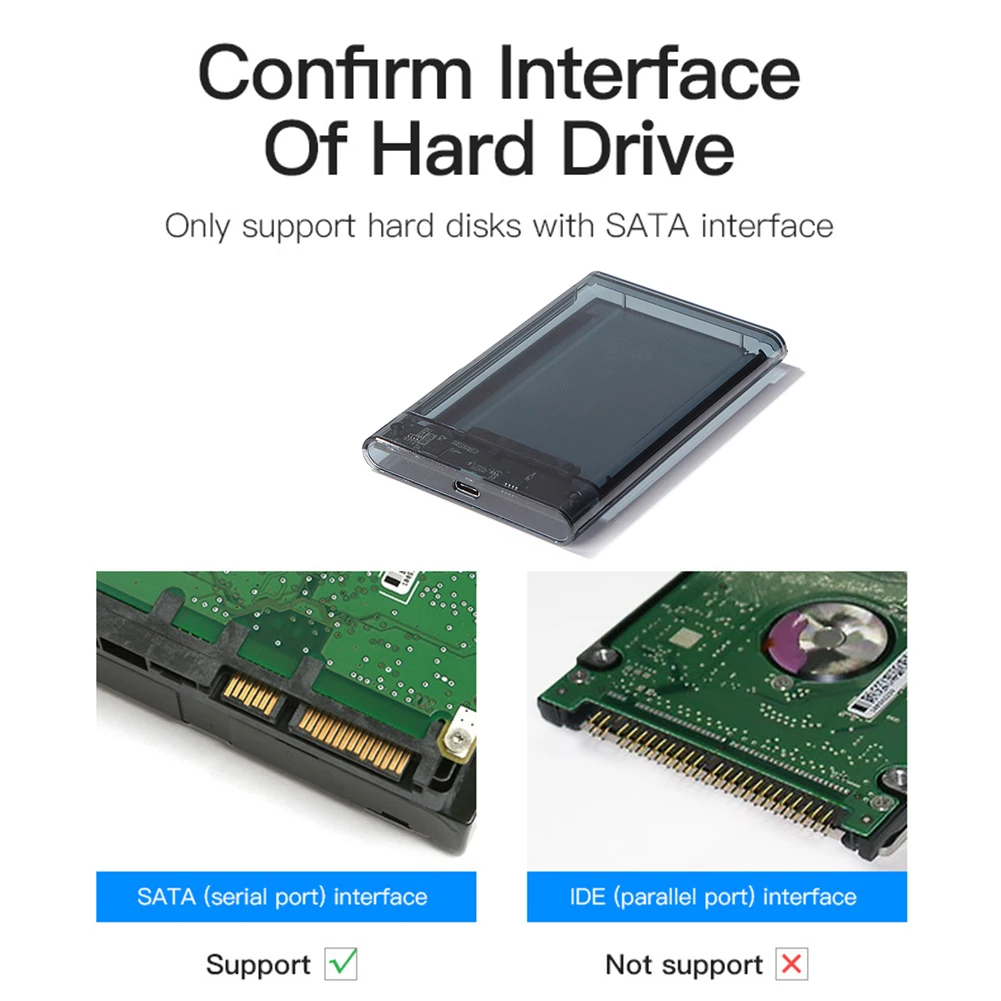 Comprar Caja de disco duro HDD de 2,5 pulgadas SATA a USB3.1 8TB SSD HDD caja de disco duro USB3.0 a tipo C transparente Plug and Play para computadora portátil