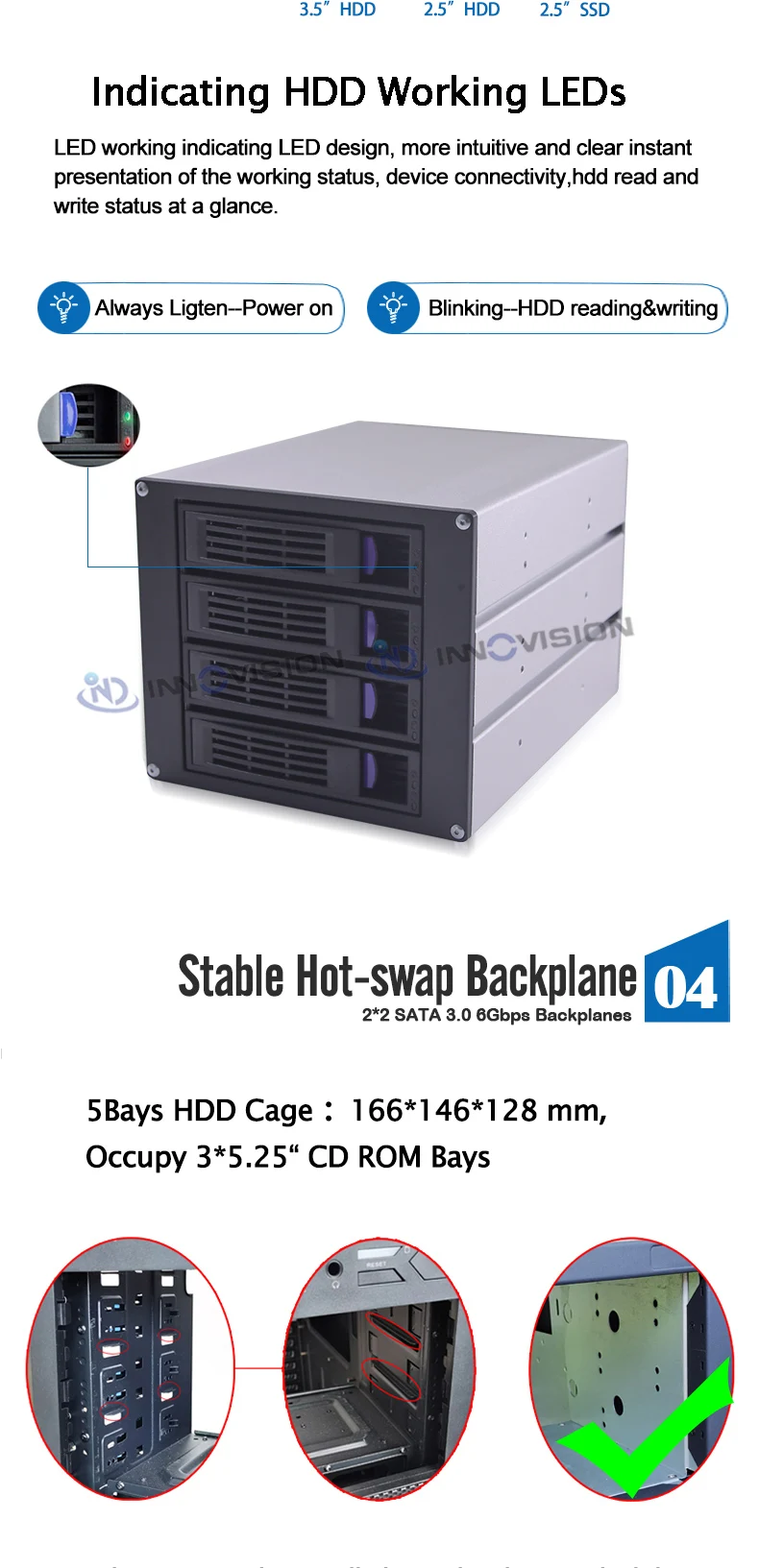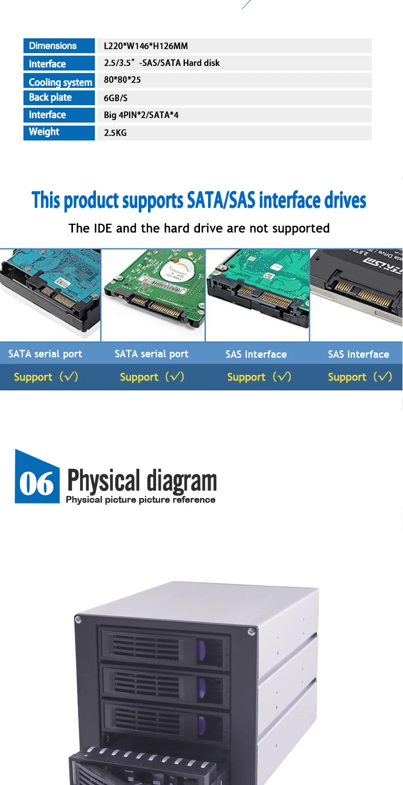 Jaula de disco duro HDD interno de 3,5 pulgadas/2,5 pulgadas para 4x SATAII Hot Swap HDD recinto