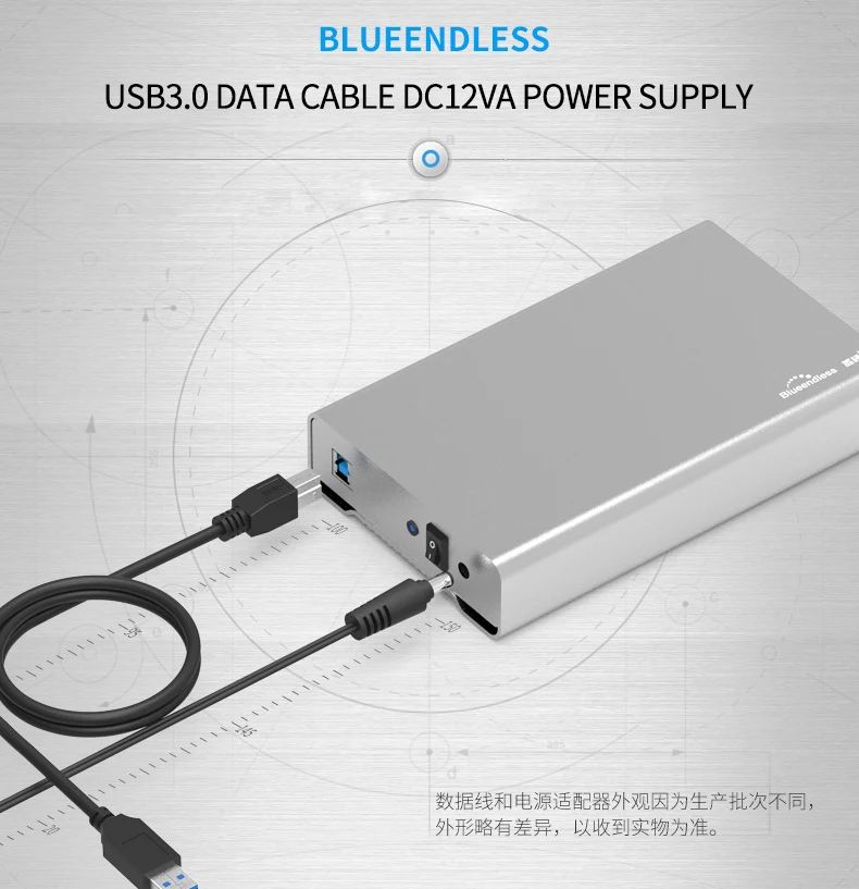 3,5 pulgadas todo metal HDD caja de disco duro móvil USB 3,0 5gbps disco duro de escritorio SATA HDD carcasa de aluminio blueendless