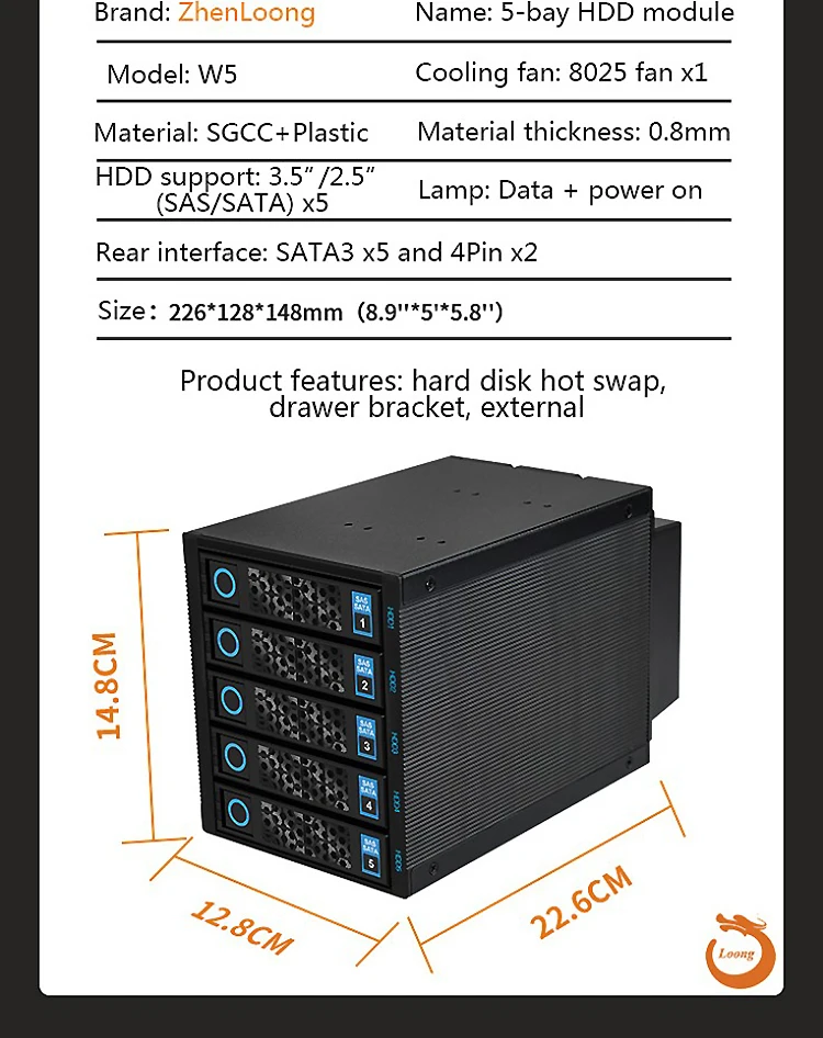 Comprar Caja de disco duro móvil de intercambio en caliente, almacenamiento de datos para tres posiciones de unidad óptica de 3,5 pulgadas, SATA, SSD, HDD, 5 bahías