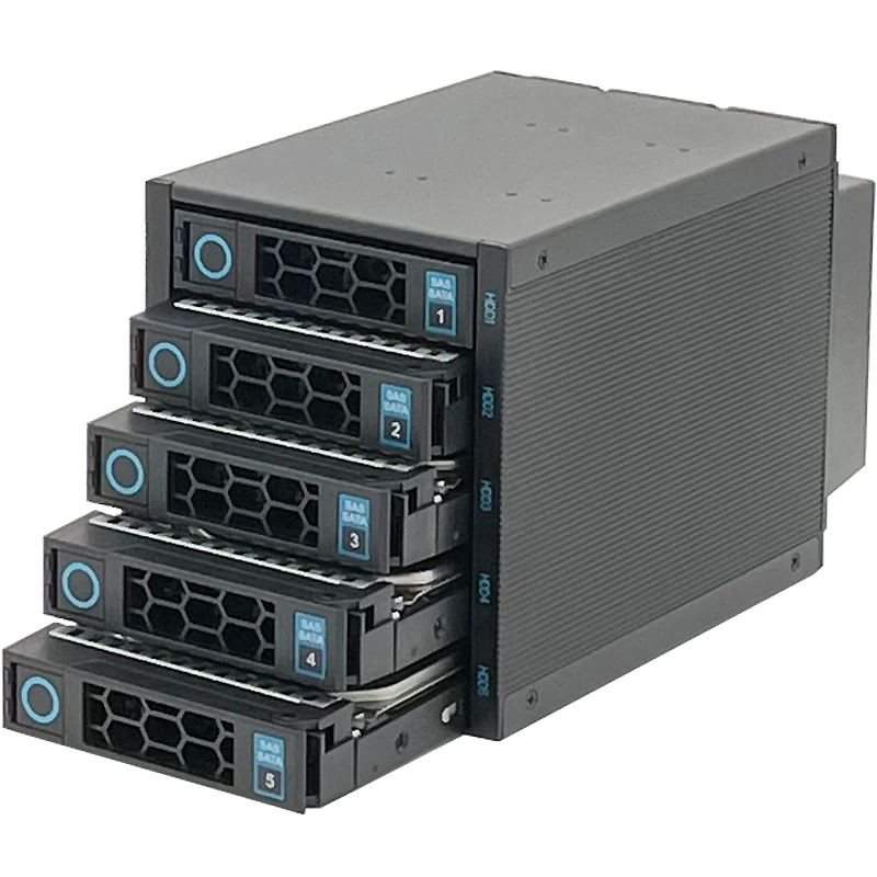 El Módulo de conexión en caliente de 5 bahías está instalado en el chasis. El chasis debe tener tres posiciones de unidad óptica estándar. ¡La pieza en bruto convexa en la posición de la unidad óptica debe aplanarse con una herramienta!