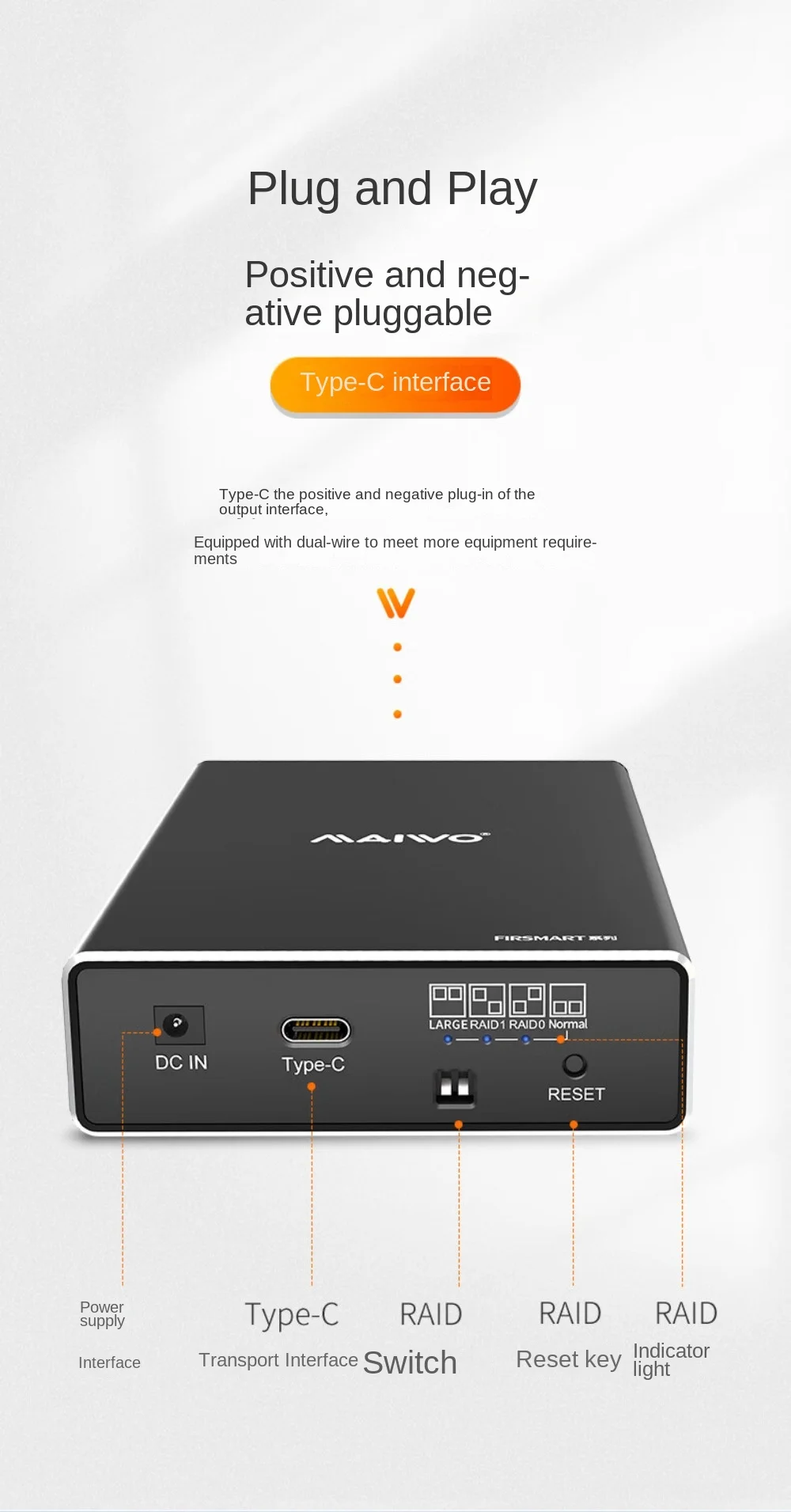 Caja HDD de doble bahía tipo C de 2,5" con RAID