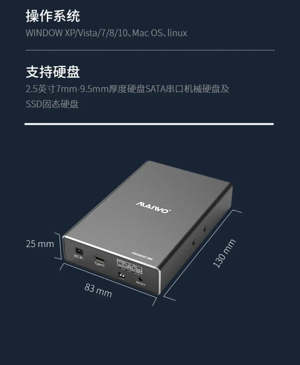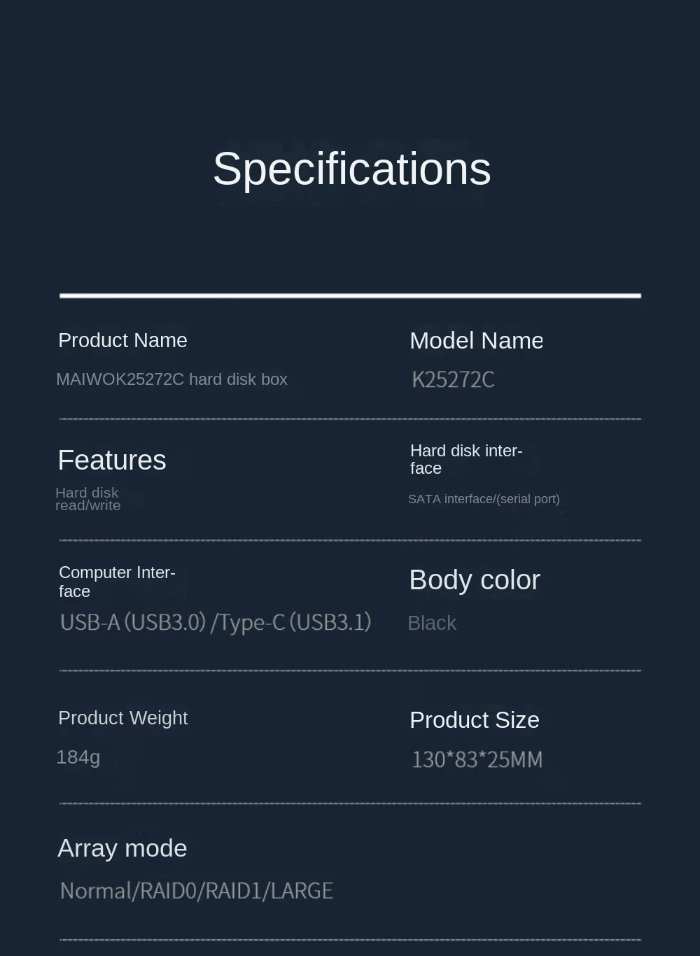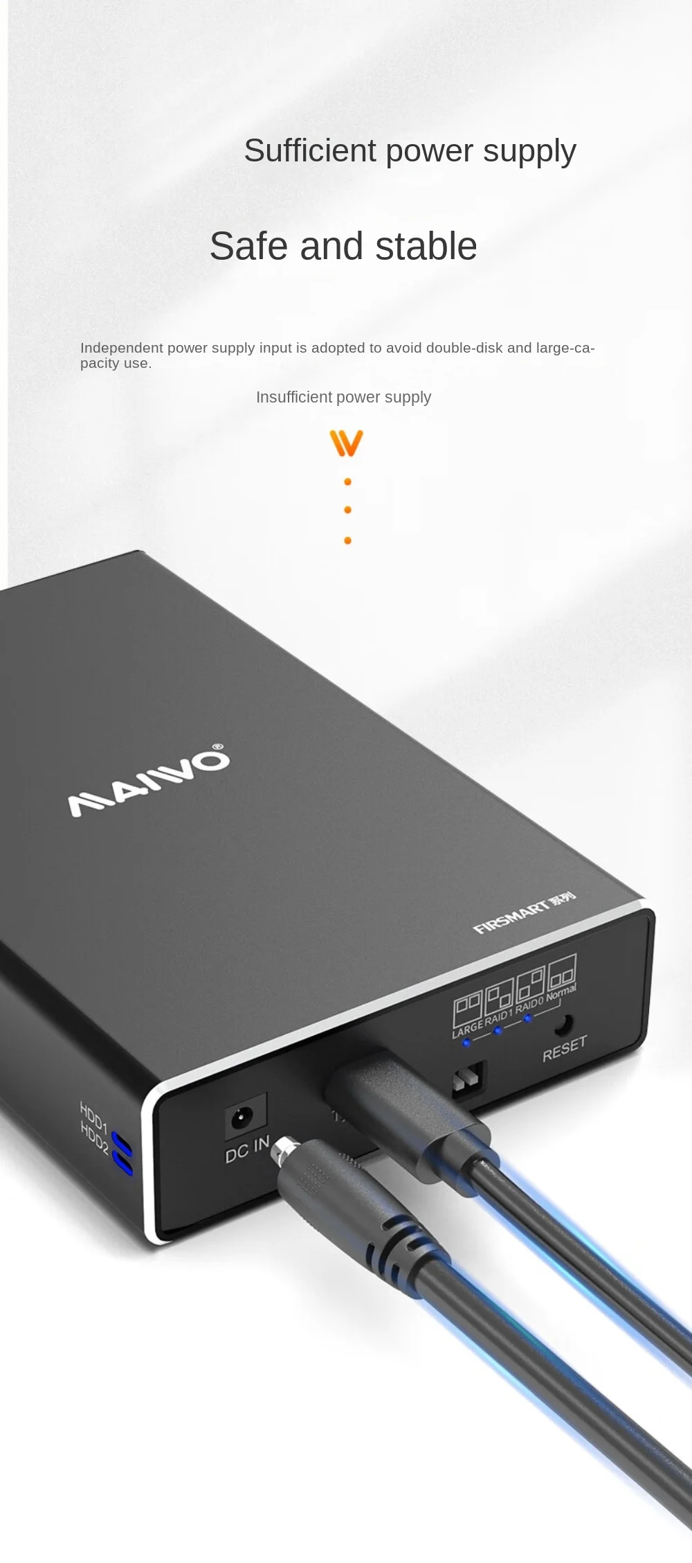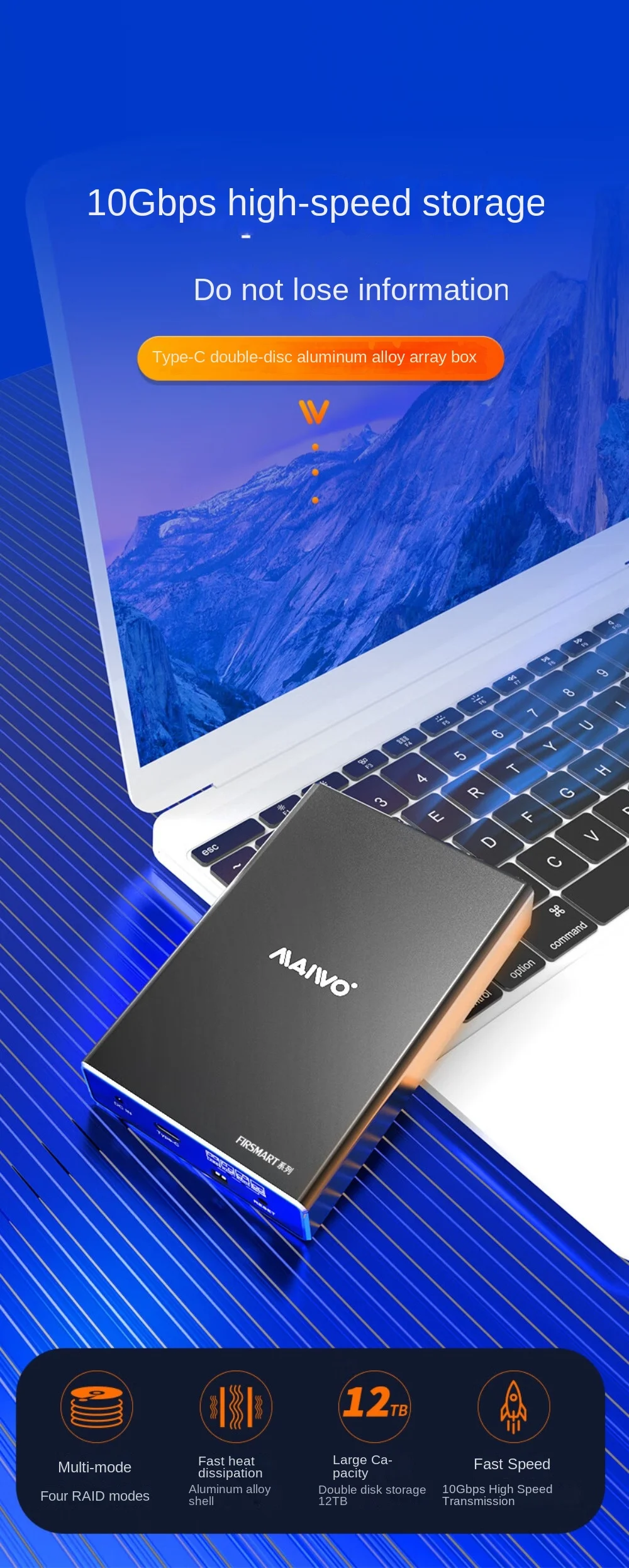 Comprar Caja de disco duro móvil MAIWO, conjunto de discos RAID, doble bahía, puerto serie mecánico de estado sólido de 2,5 pulgadas, caja externa con cubierta protectora